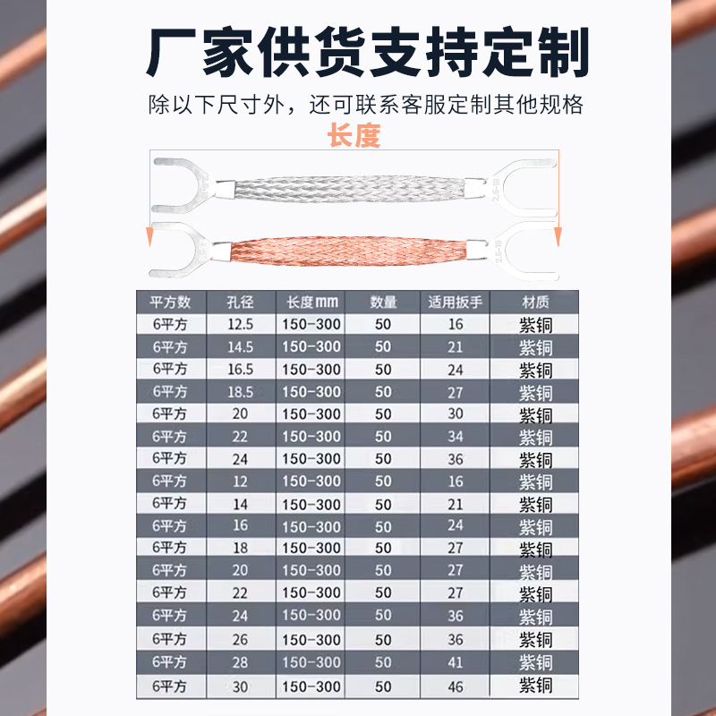 2.5平方紫铜法兰静电跨接线U型开口镀锡连接线防爆铜编织带接地线