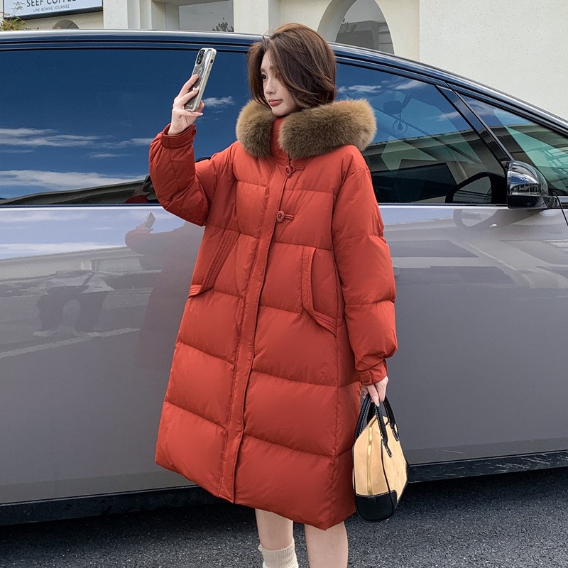 加肥加大羽绒服女长款过膝200斤胖mm240冬装新款宽松连帽毛领外套
