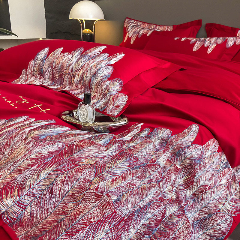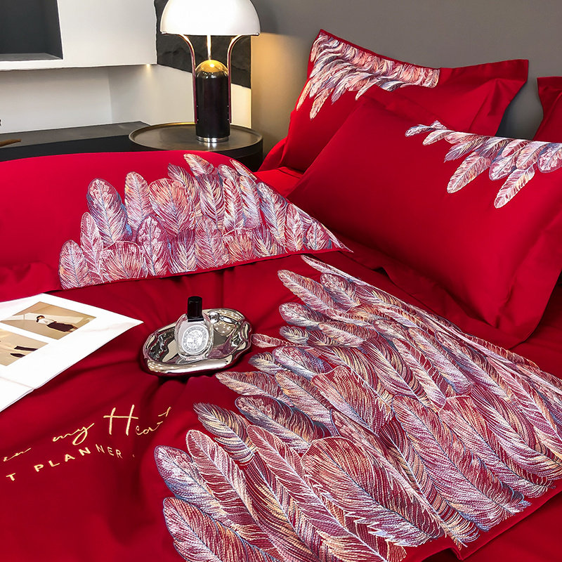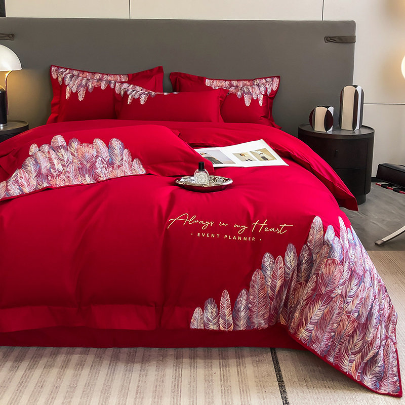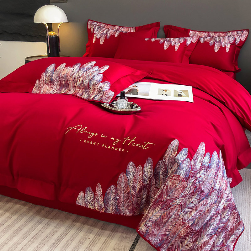 60支长绒棉全棉四件套婚庆纯棉喜被红色床单被套结婚床上用品婚嫁