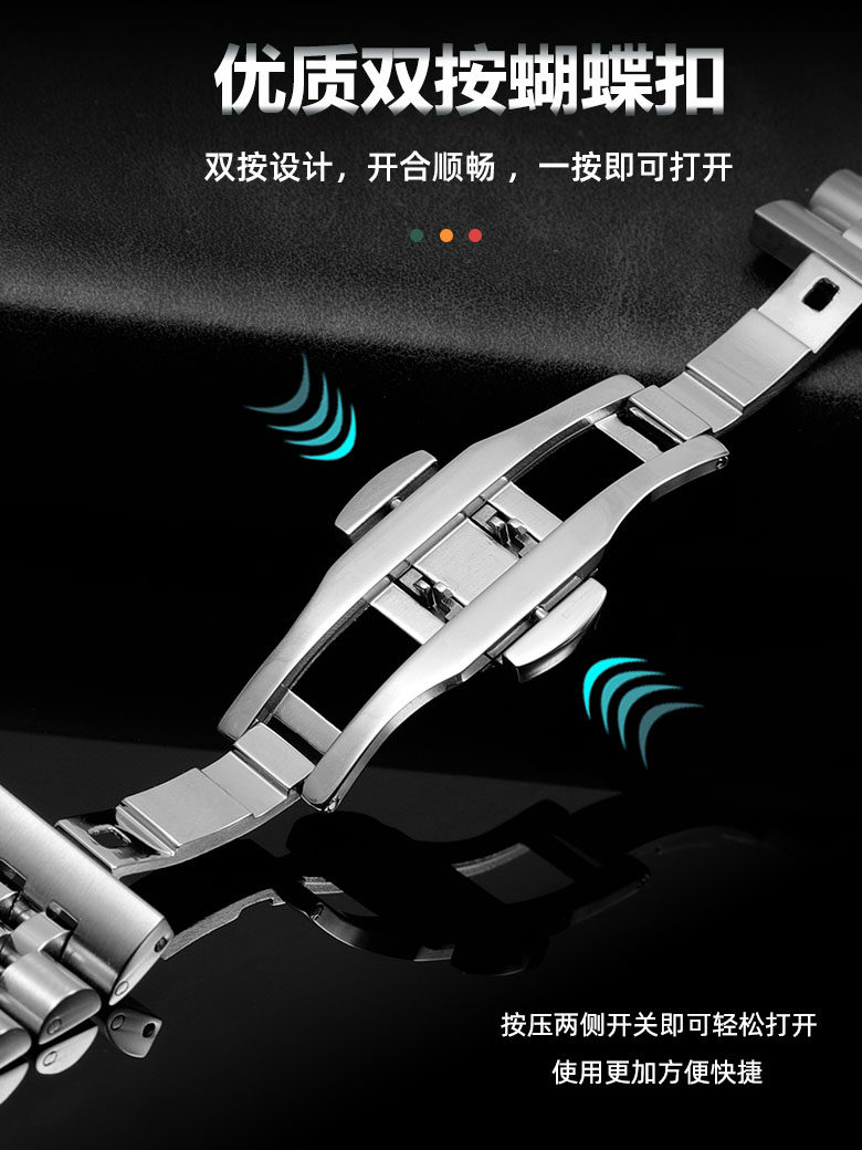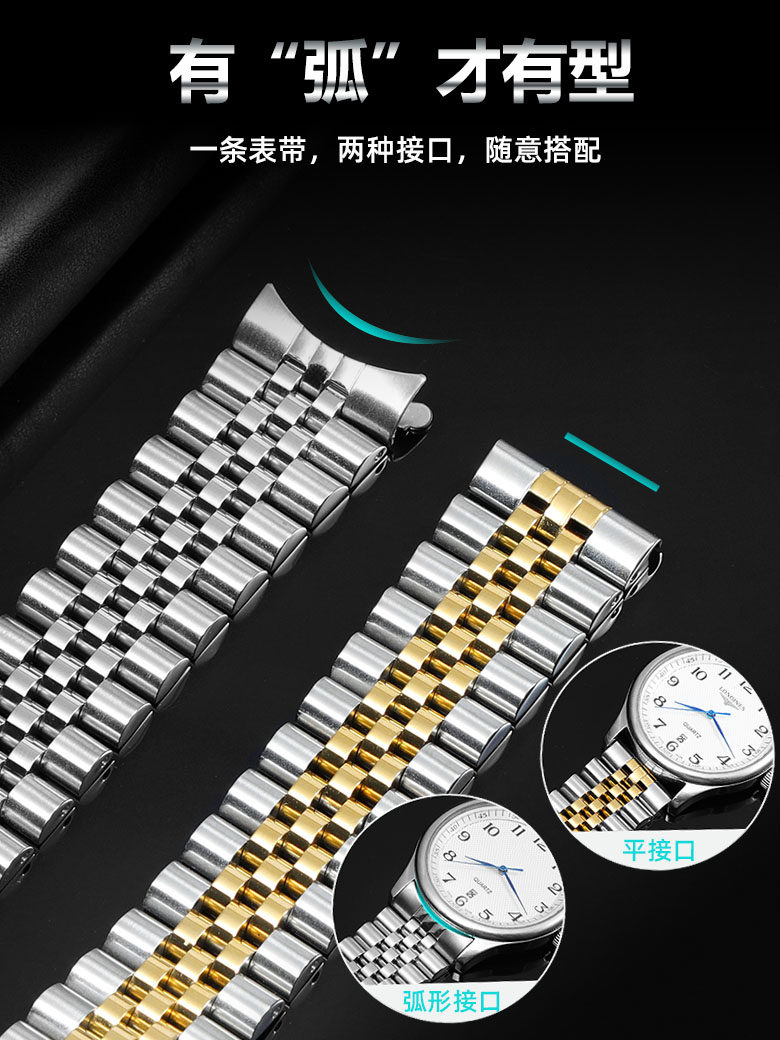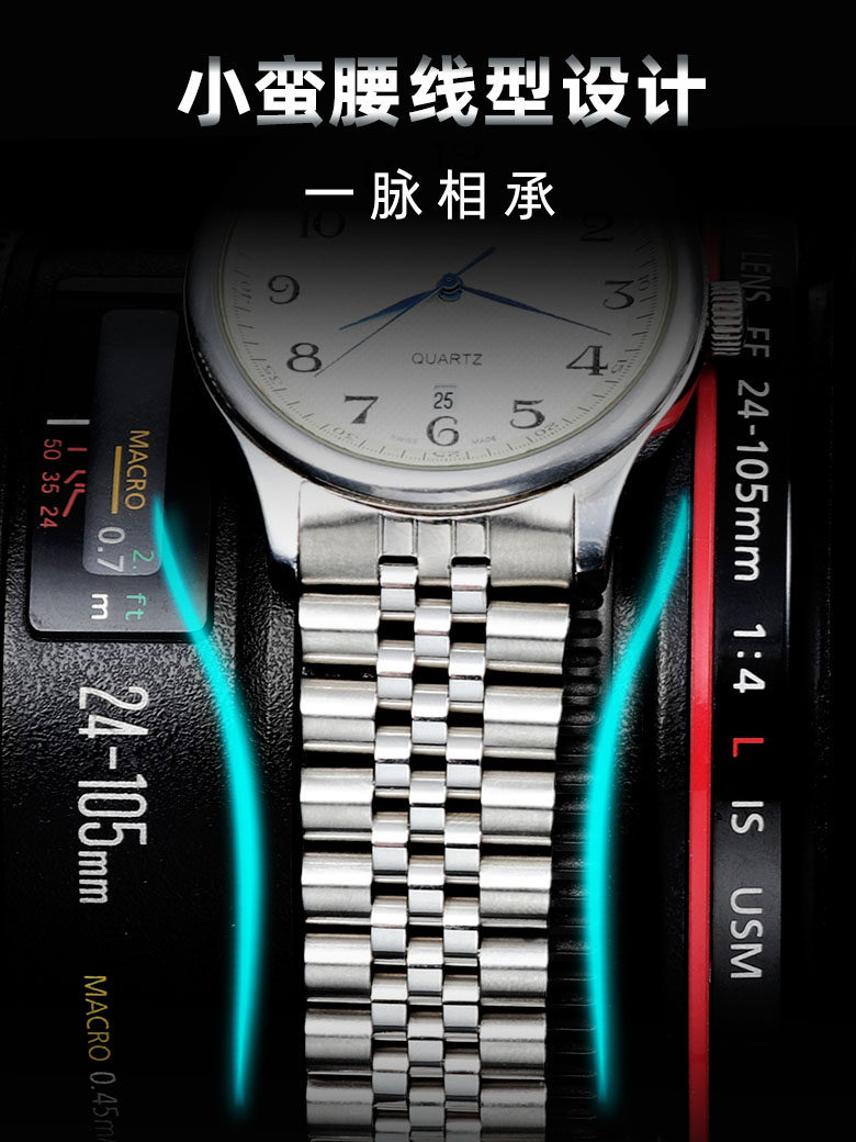 手表带钢带男弧形口女表链适配阿玛尼劳力士浪琴天梭天王罗西尼dw