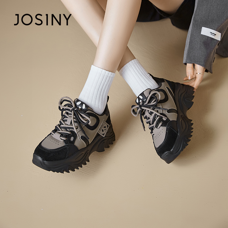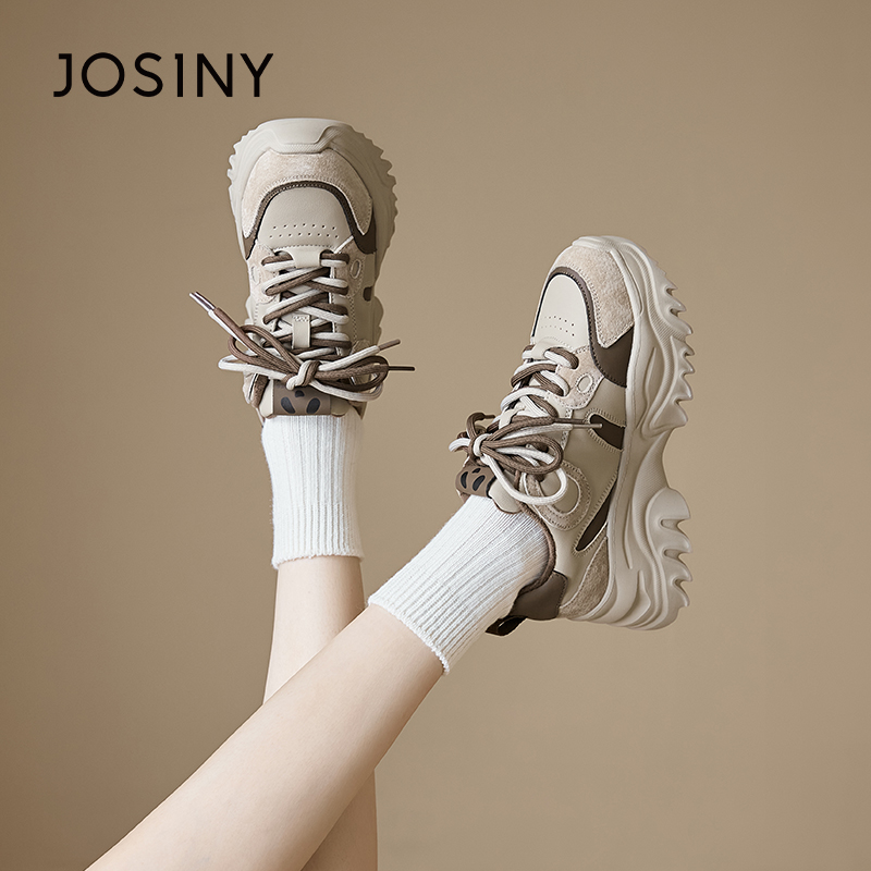 卓诗尼2025秋冬季新款厚底老爹鞋女鞋休闲运动鞋单里加绒真皮系带