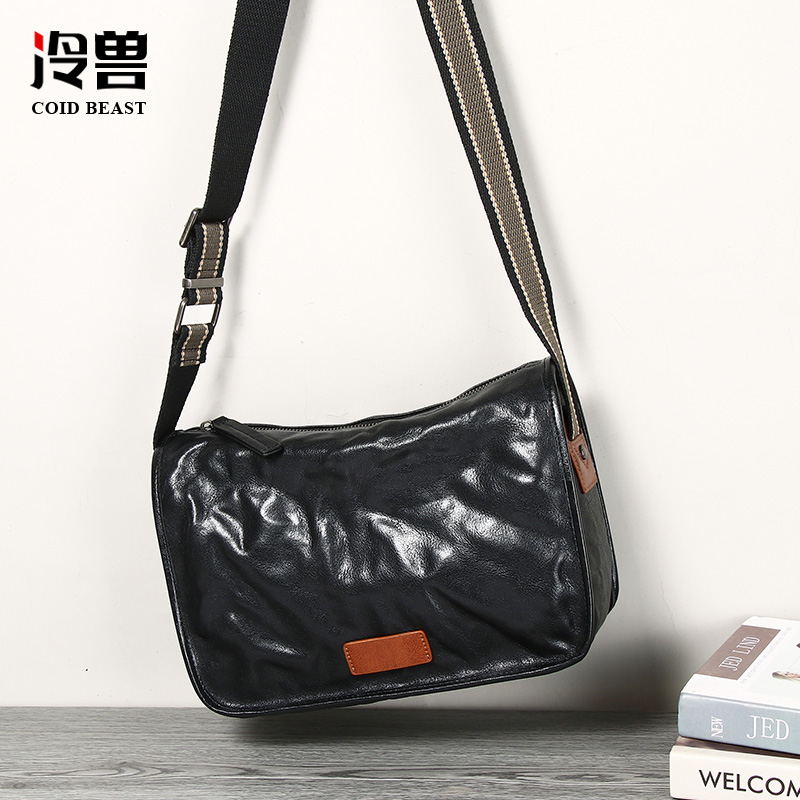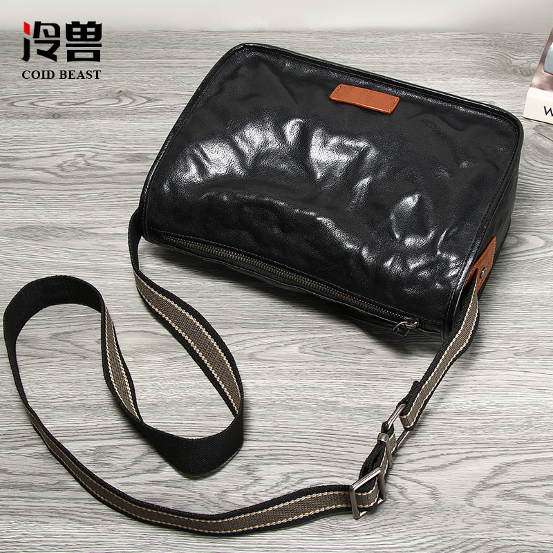 冷兽真皮斜挎包男包单肩包男士包包头层牛皮竖款商务休闲小背包潮