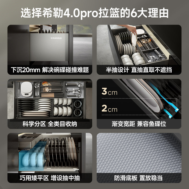悍高拉篮厨房橱柜拉篮抽屉式双层碗碟篮置物架铝合金调味篮收纳架