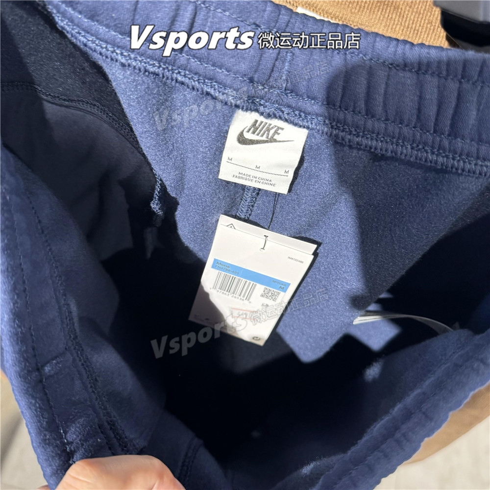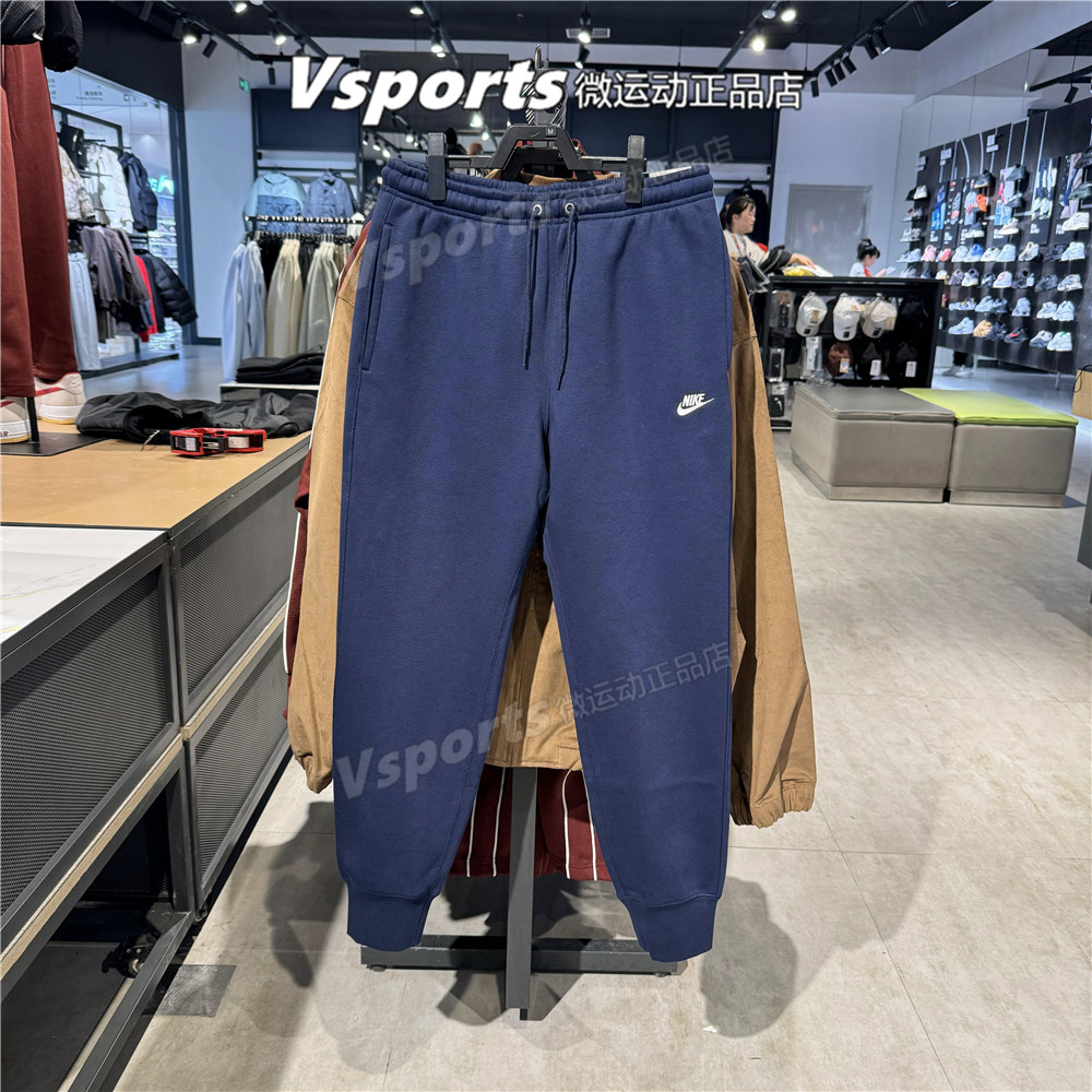 正品耐克男裤2025秋冬季加绒运动休闲蓝色收口针织长裤FN3788-451