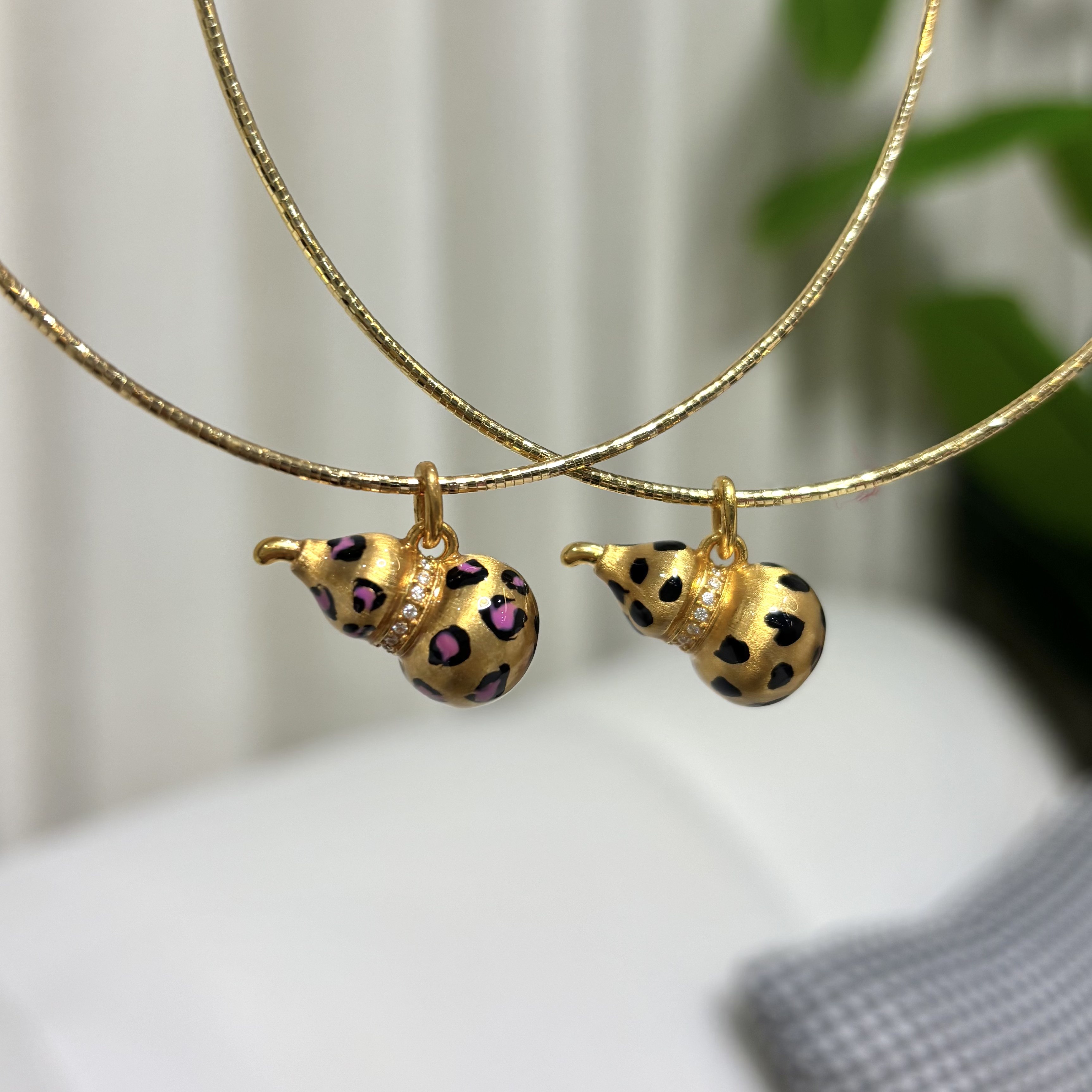 18K金镶嵌豹纹葫芦(大)饰品 时尚百搭 轻奢潮流(赠合金链)