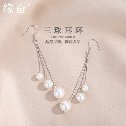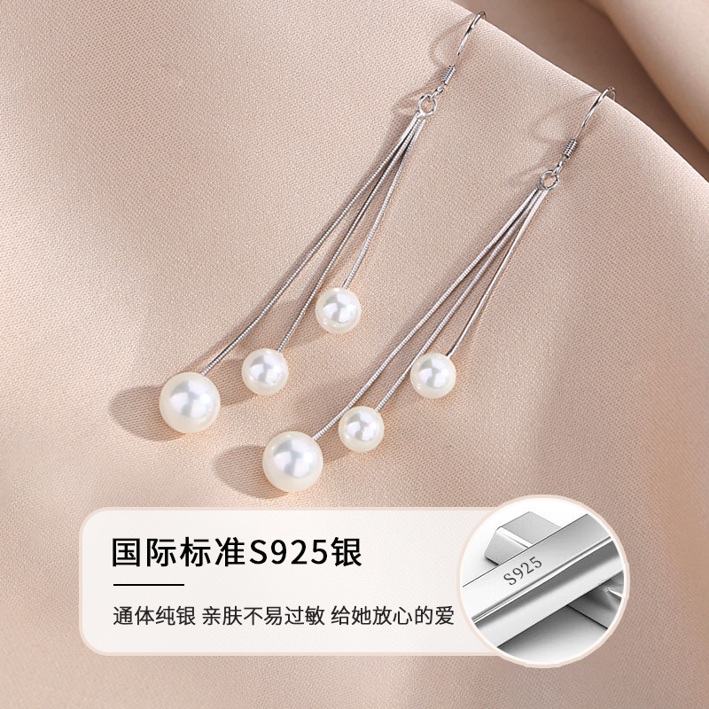 925纯银珍珠耳饰女银耳钉耳环2025年新款潮高级感长款耳坠送女友