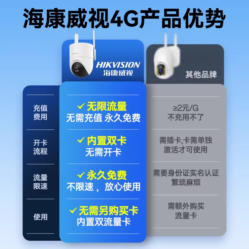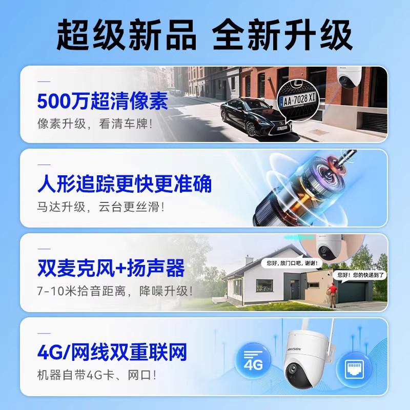 海康威视监控家用手机远程室外无线摄影高清360度无死角4G摄像头