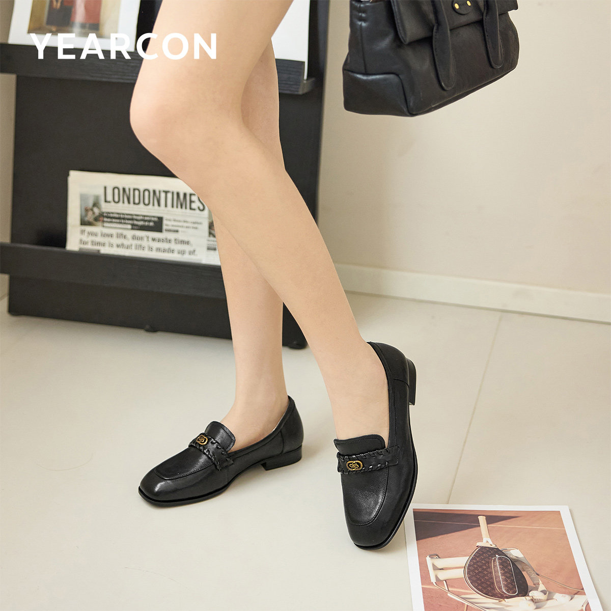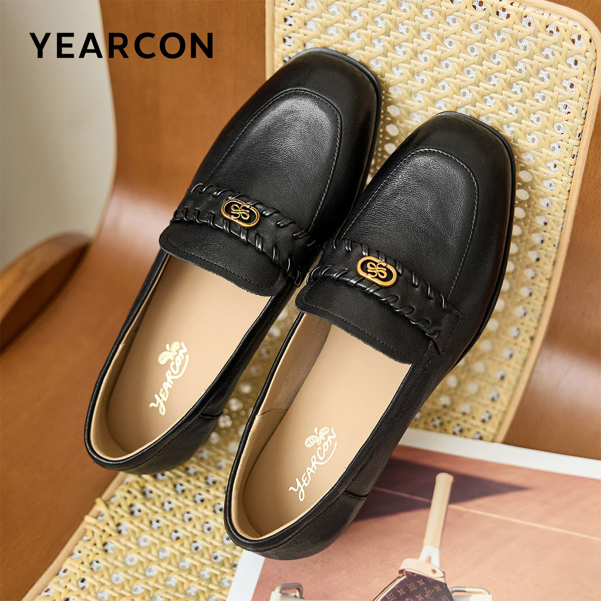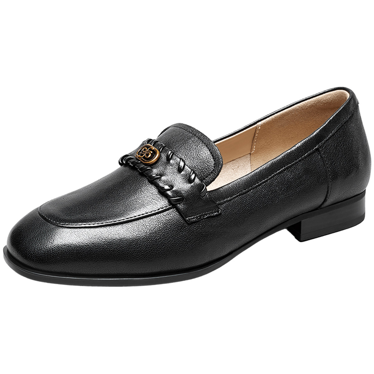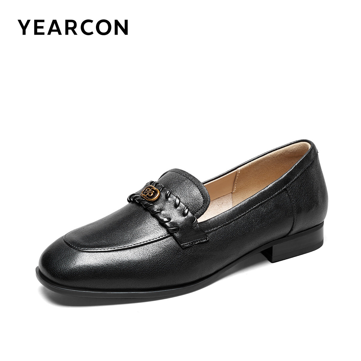 意尔康女鞋2026春季羊皮粗跟方头小皮鞋真皮乐福鞋通勤单鞋气质