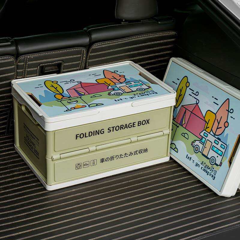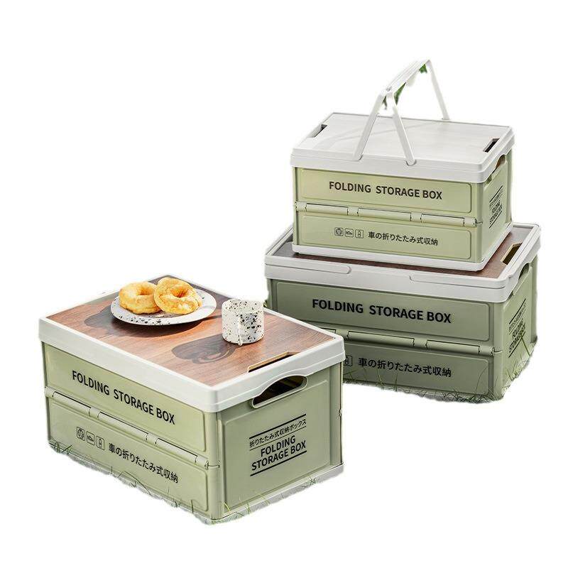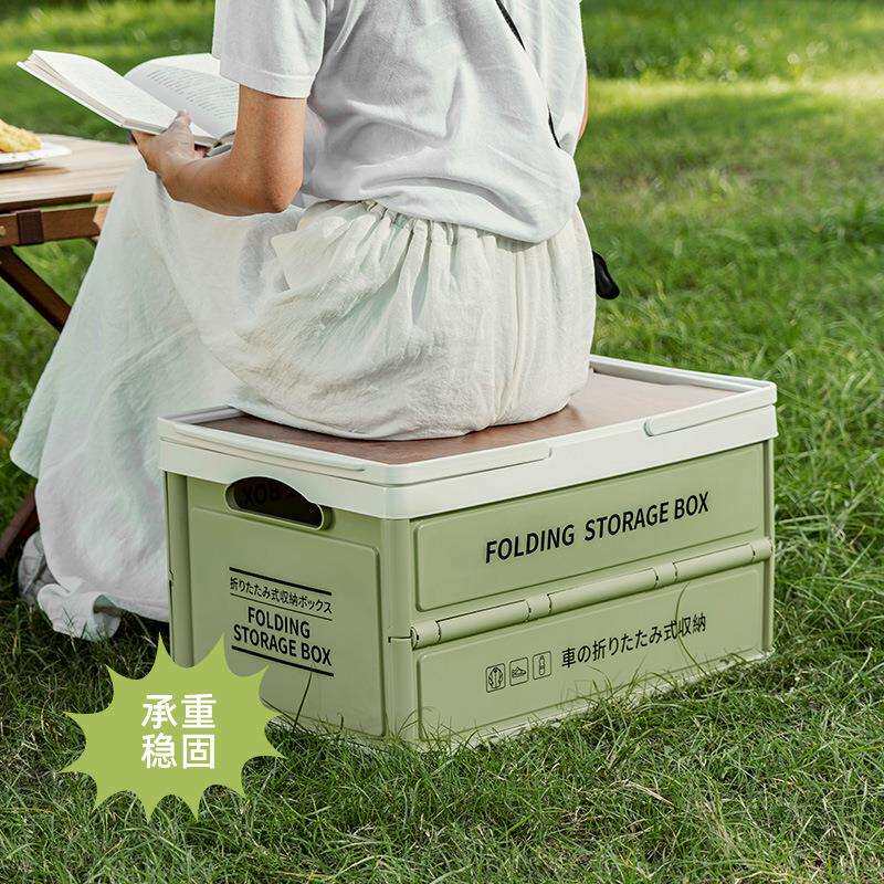 户外露营收纳箱野餐木盖储物箱车载后备箱整理箱手提篮野营折叠箱