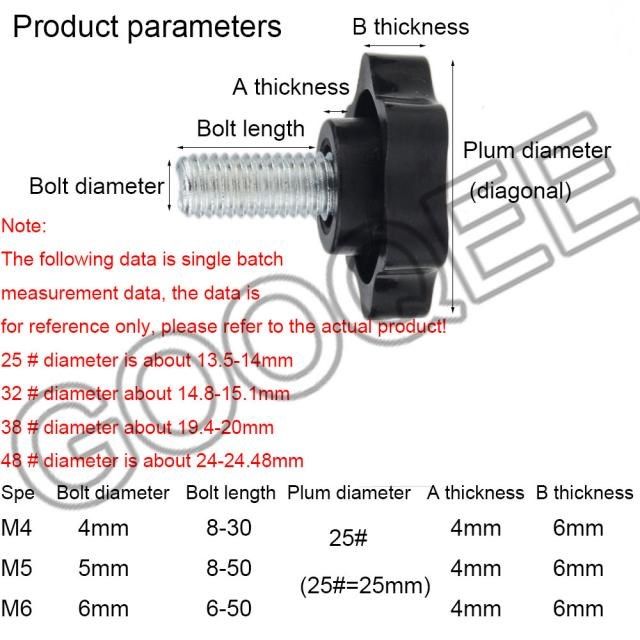5PCS M6 M8 M10 Six Star Type Hand Screw Bakelite Plum Screw