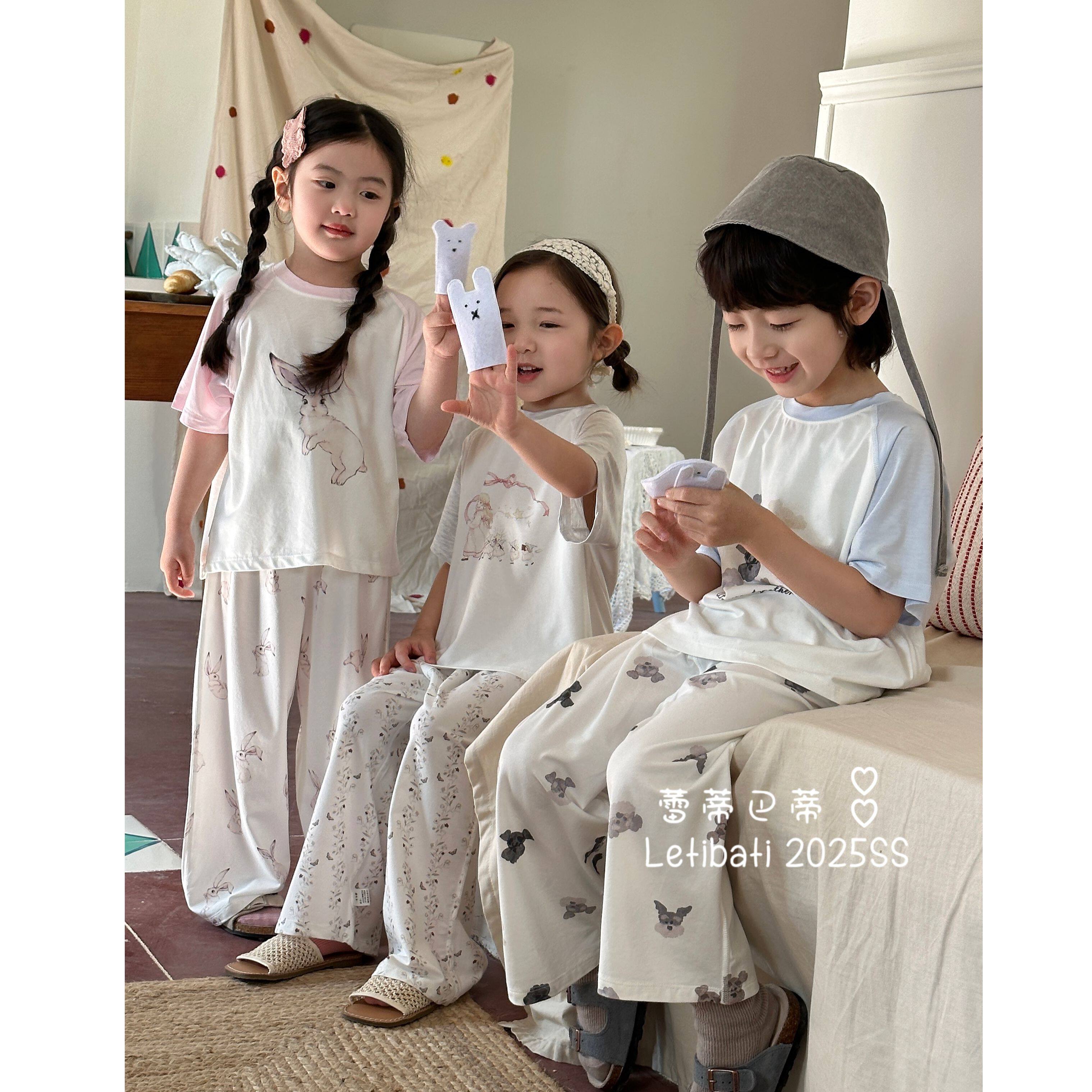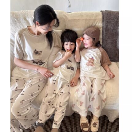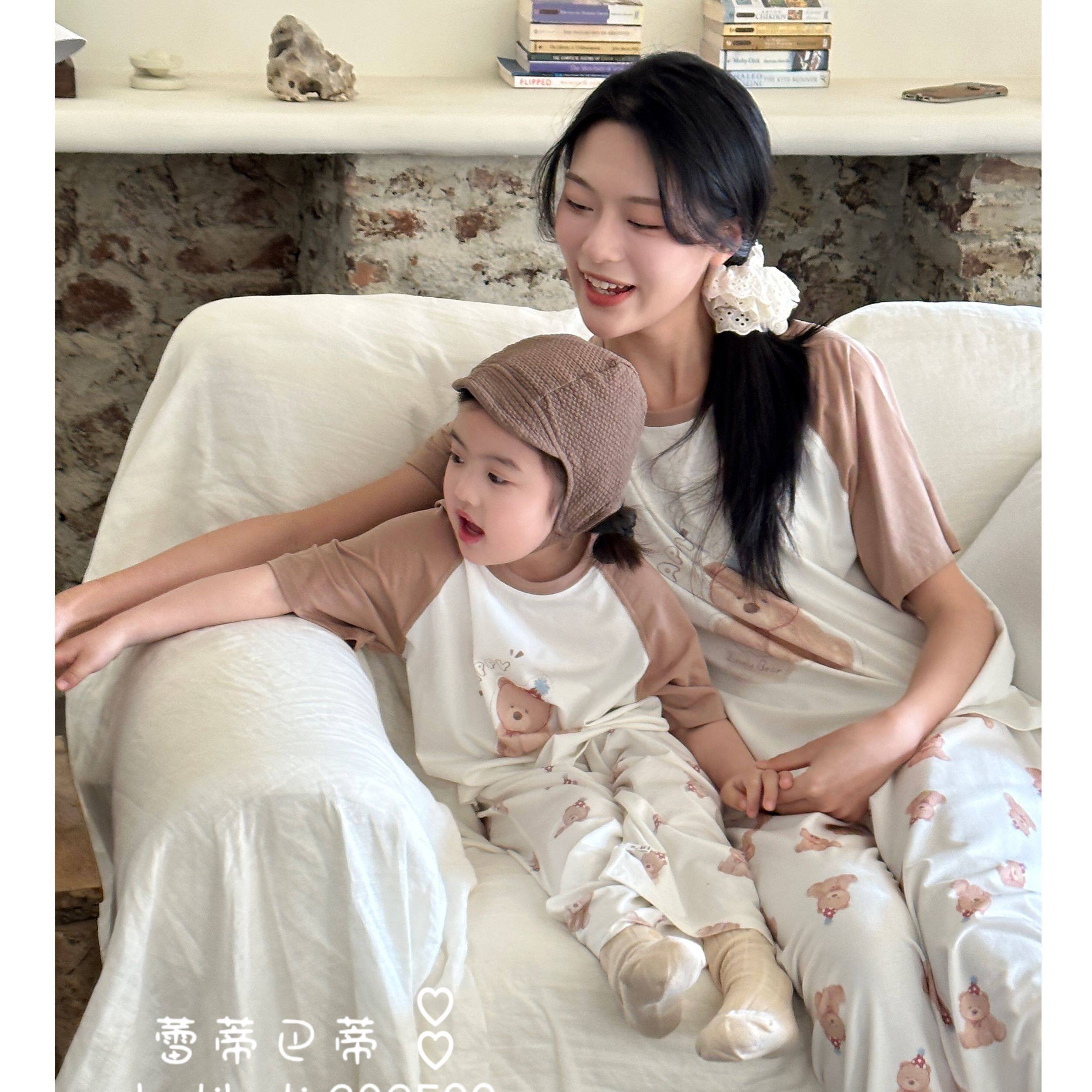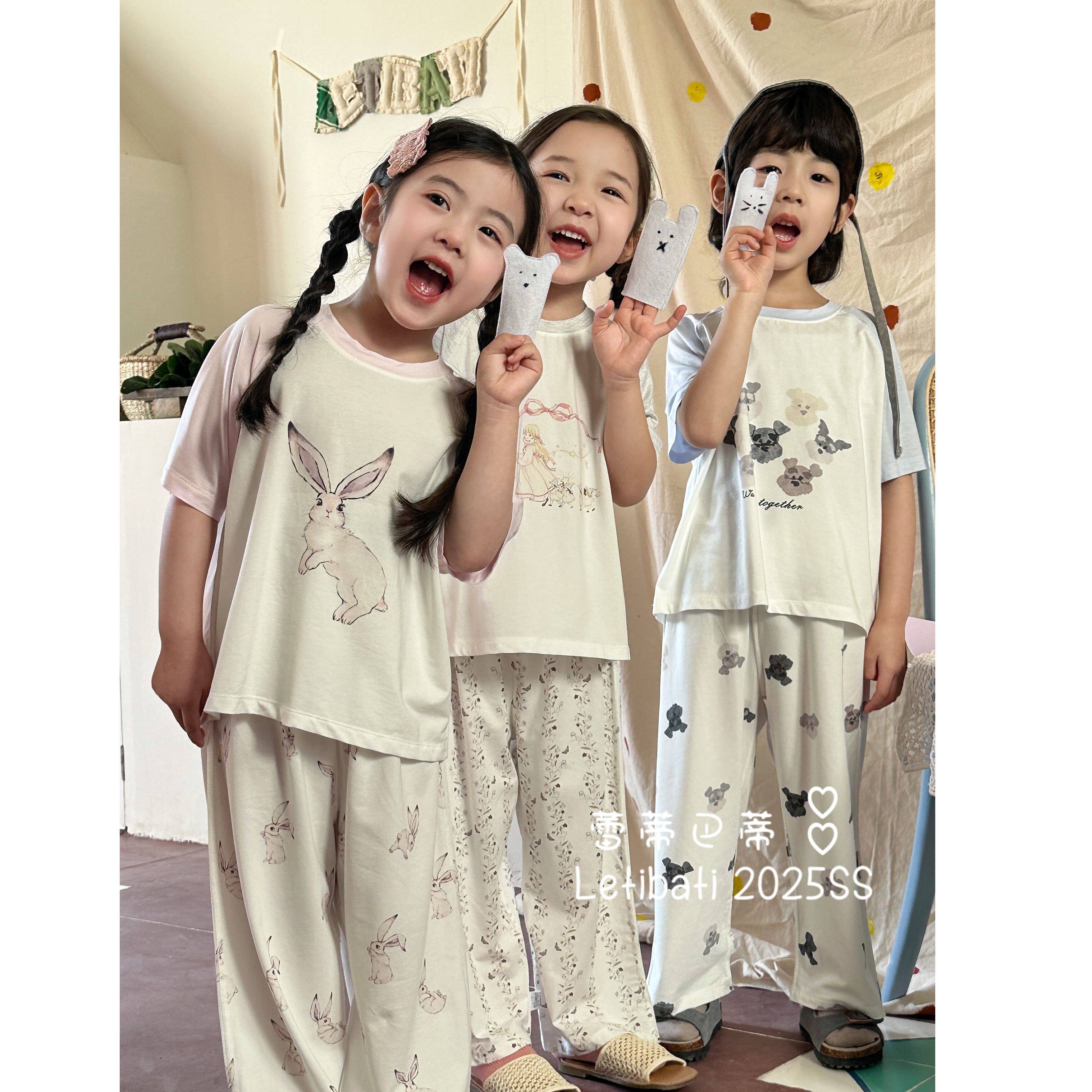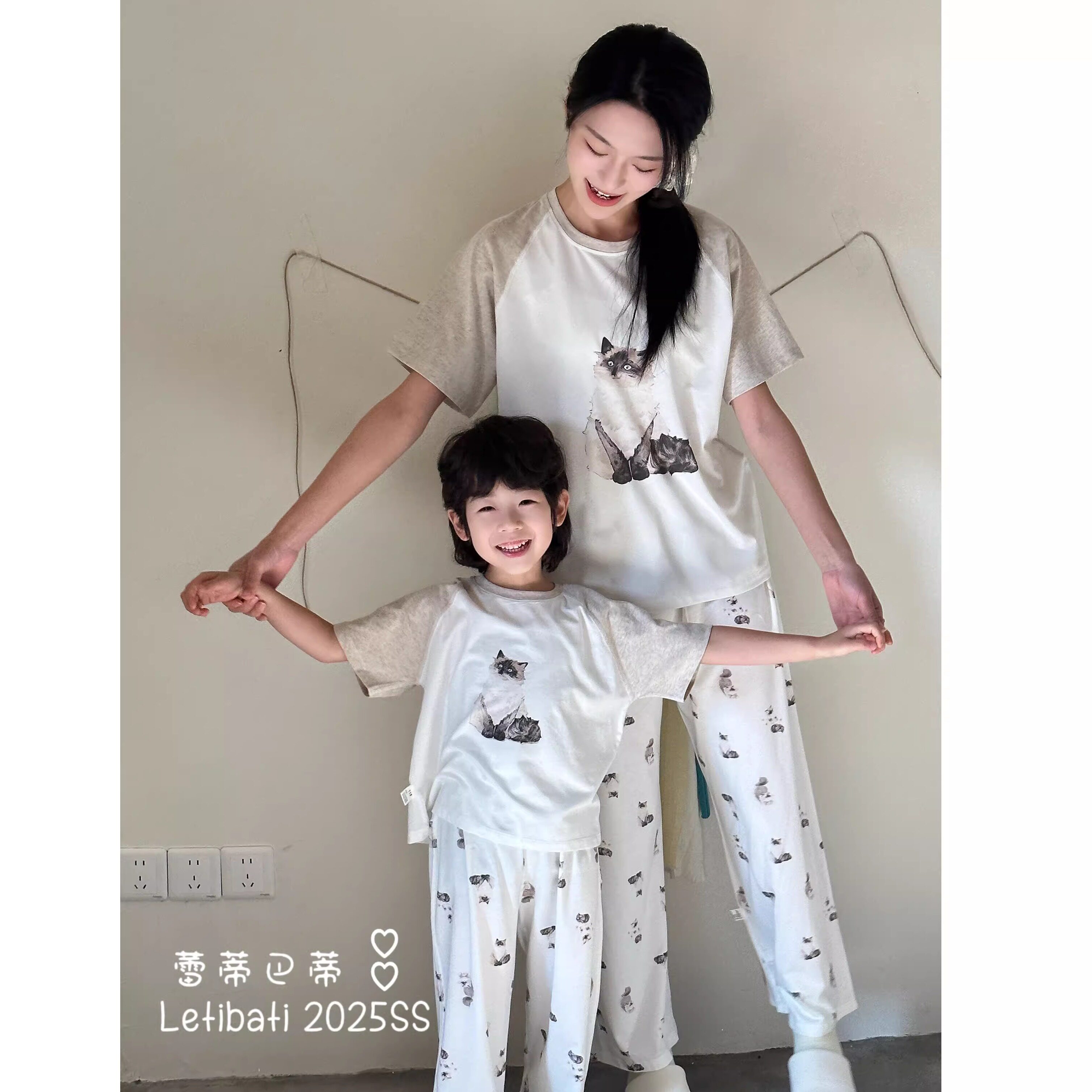 蕾蒂巴蒂亲子睡衣儿童天丝莫代尔短袖长裤套装空调家居服男童宝宝