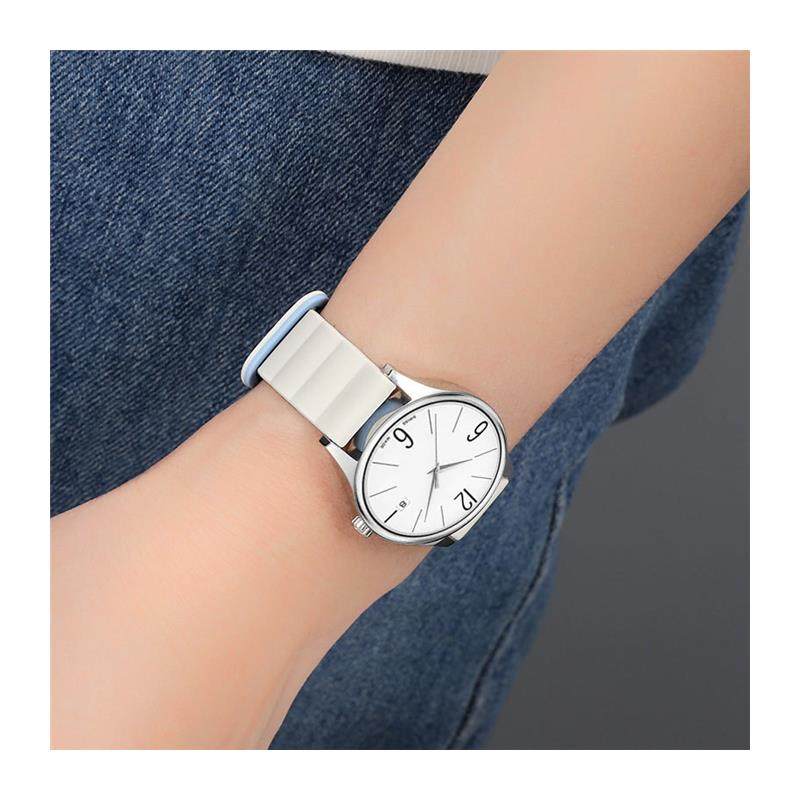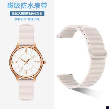 适用于天梭臻时T103硅胶表带T103210杜鲁尔心媛女款表带米白磁吸