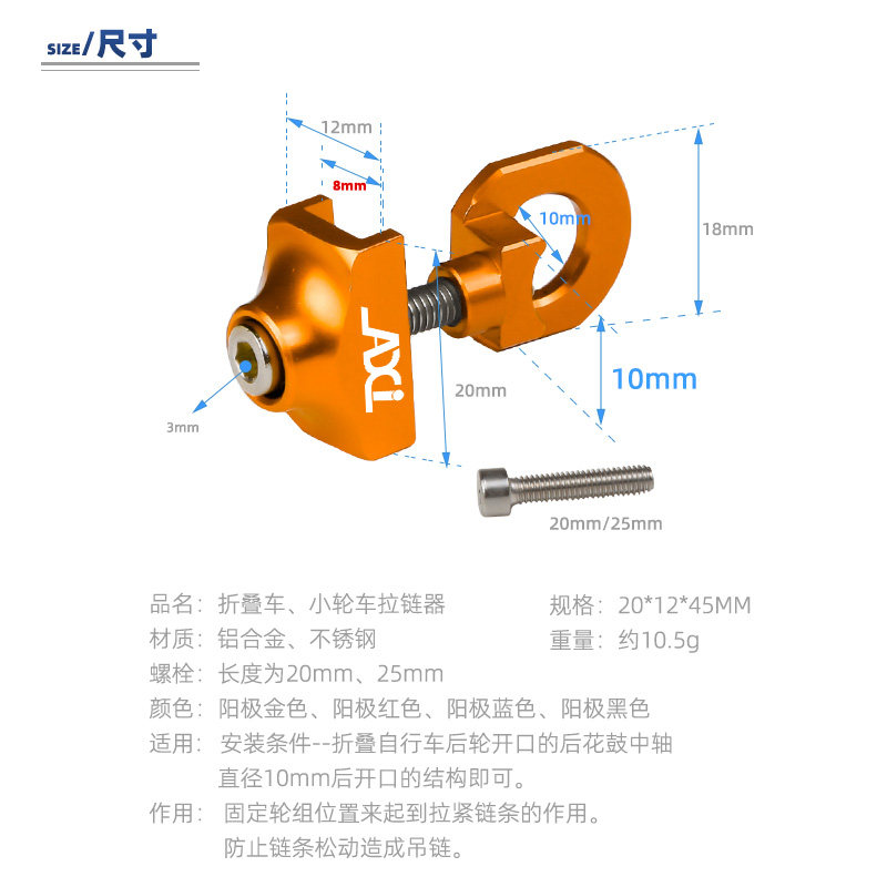 鱼尾车架自行车拉链器 死飞单速折叠车紧链器链条调节器压链器