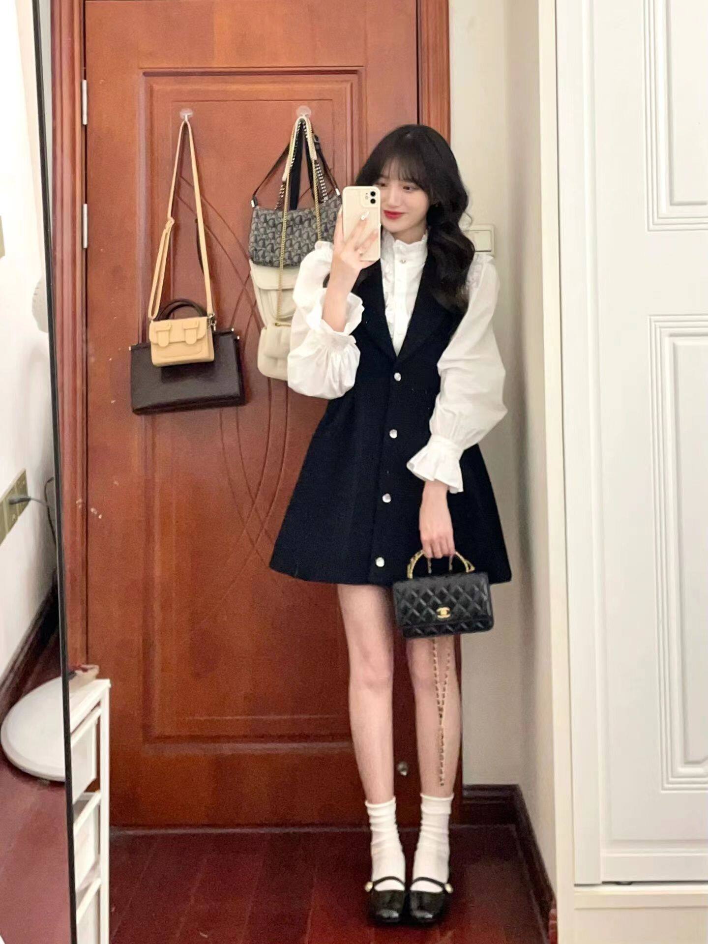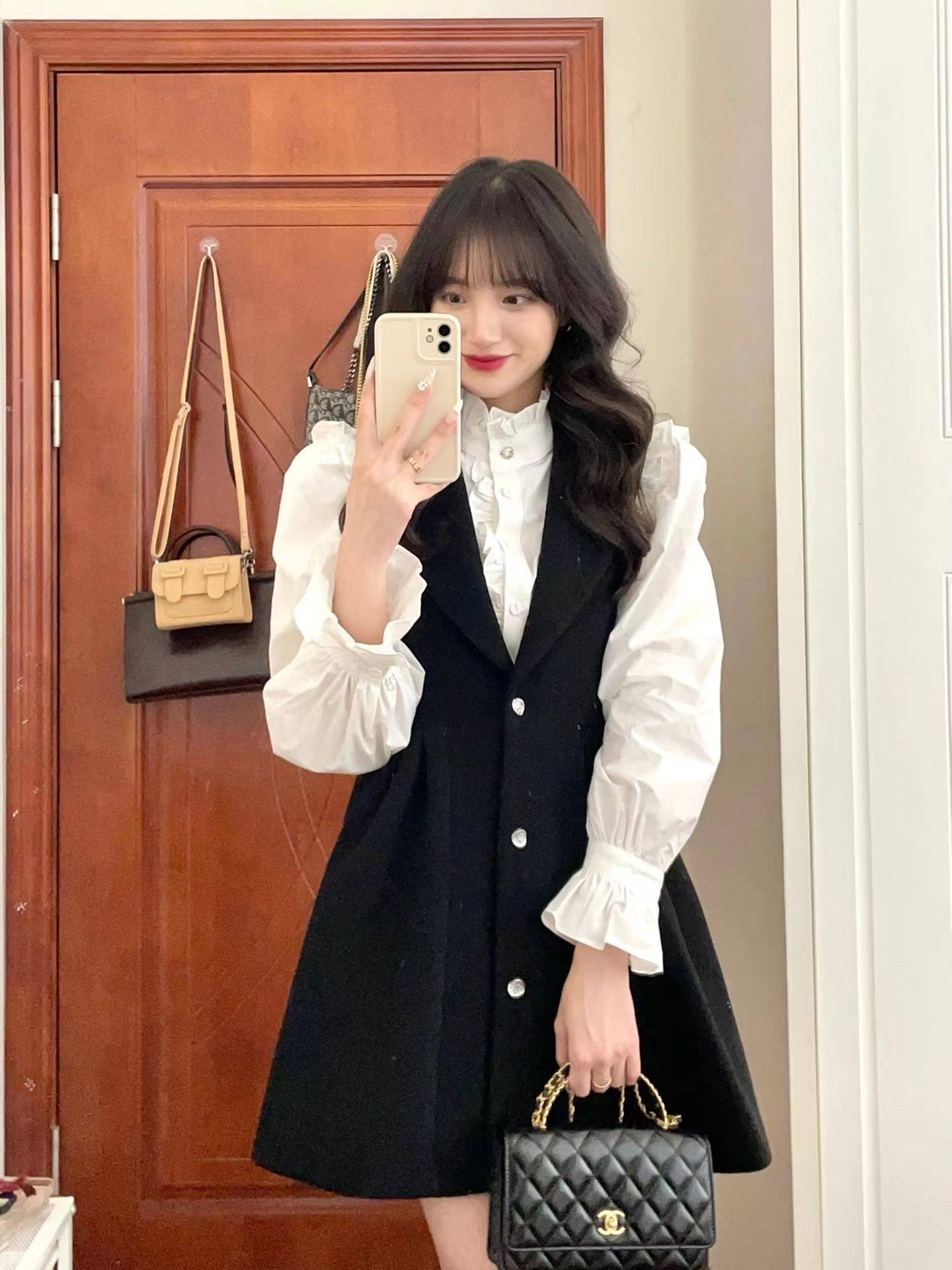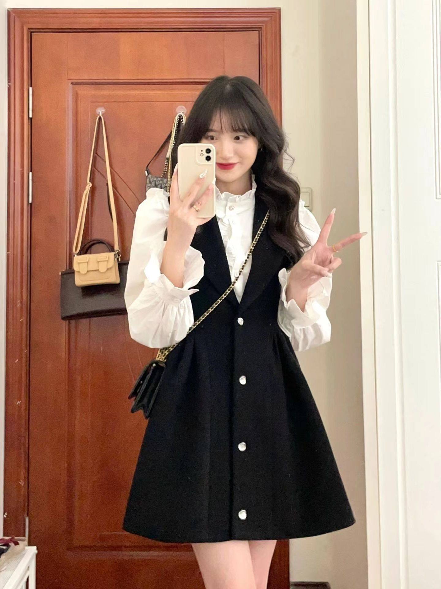 茶歇法式衬衫背带裙两件套装春季气质名媛学院风温柔穿搭连衣裙子