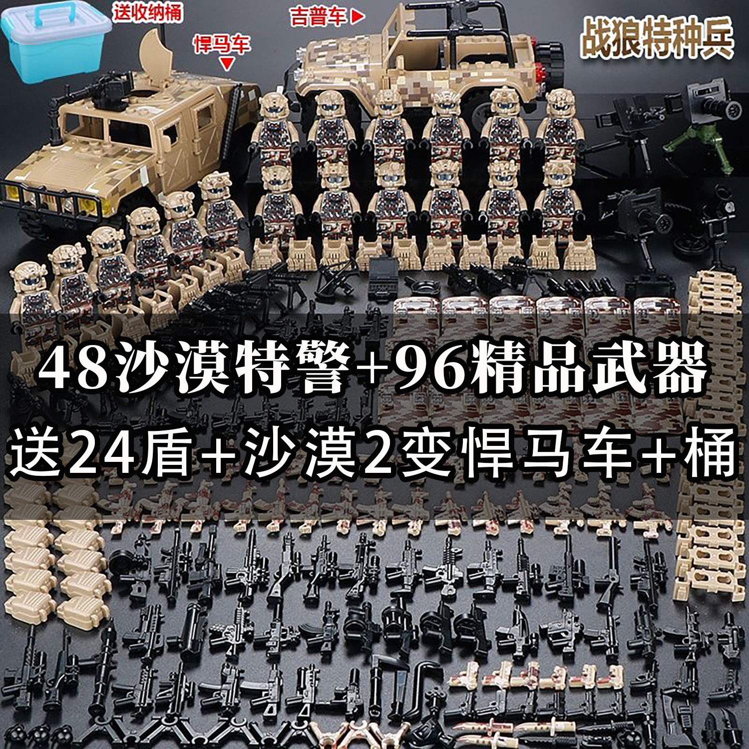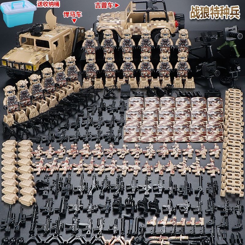 兼容乐高军事积木人仔特种兵新悍马车机器狼儿童益智拼装便宜玩具