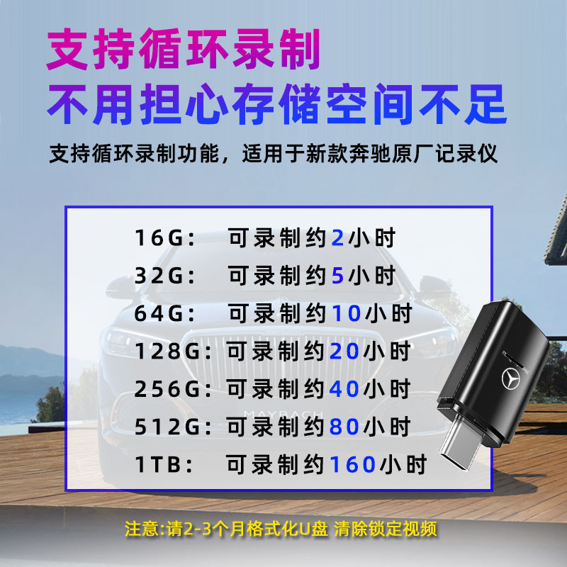 奔驰行车记录仪U盘type-c车载U盘c260l/glc300/e300/迈巴赫s400