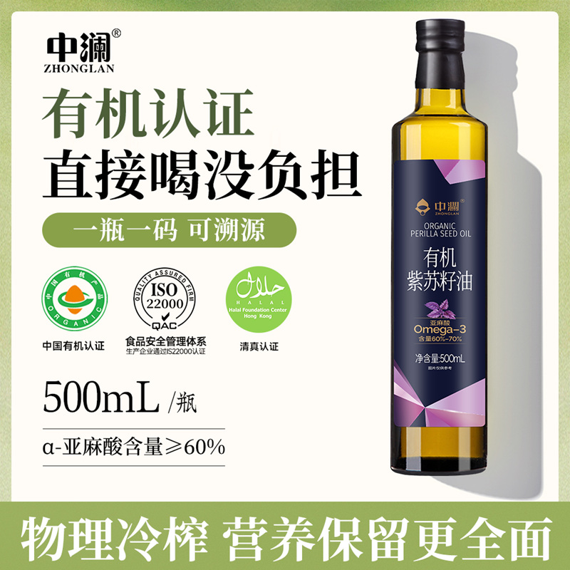中澜有机紫苏籽油官方旗舰店冷榨口服紫苏籽油食用油亚麻籽油