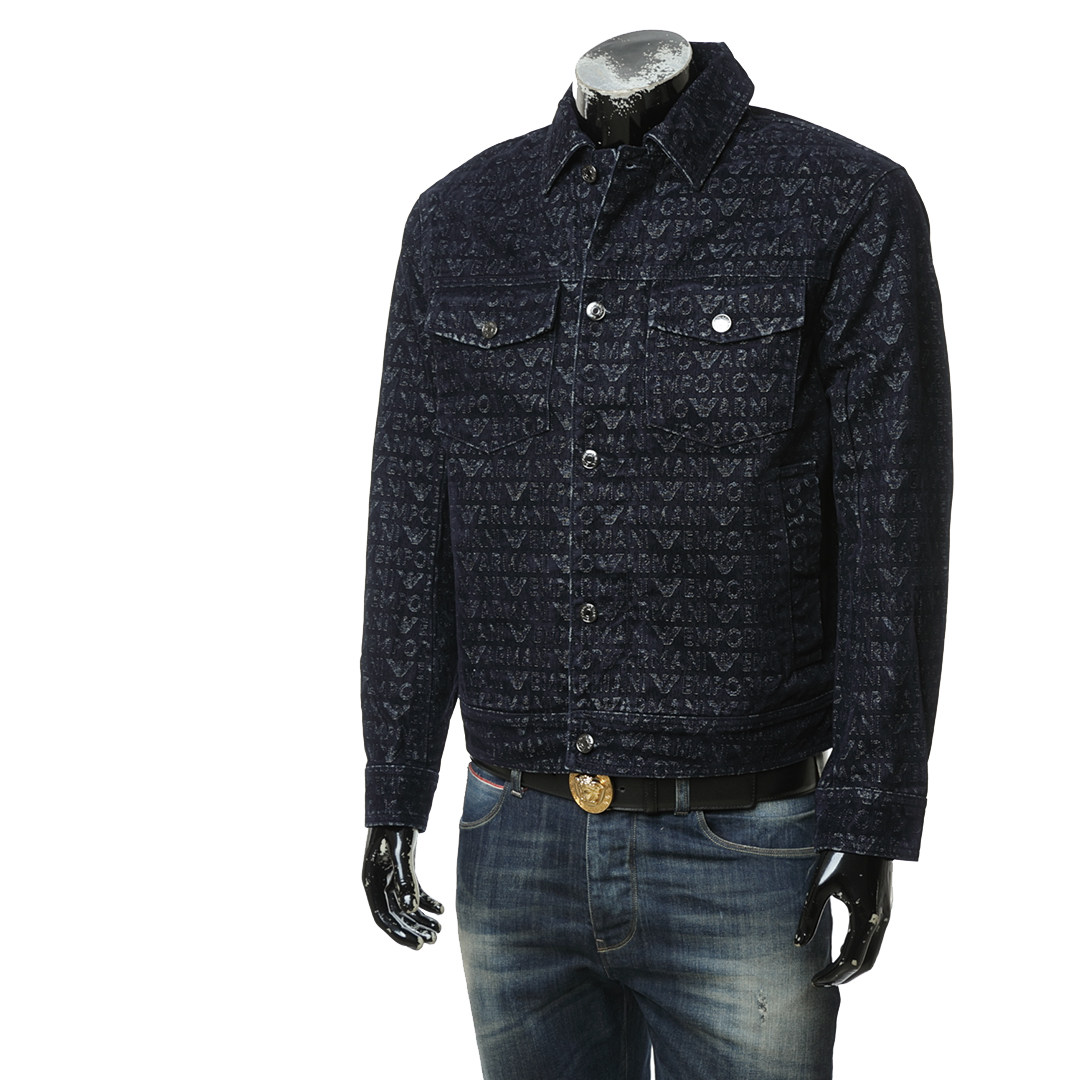 Armani/阿玛尼EA 男士满印鹰标牛仔夹克外套 EM001175 AF13446