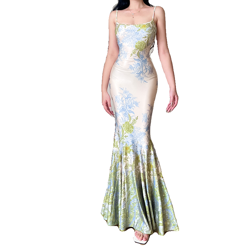 instunning新中式吊带鱼尾连衣裙女新款高级缎面伴娘服礼服长裙子
