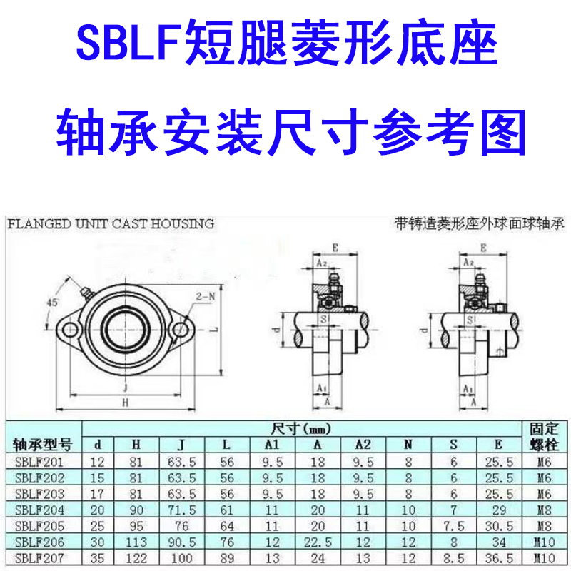 外球面轴承短脚菱形座 SBLF204 LF205 LF206 LF207 LF203 LF208SA