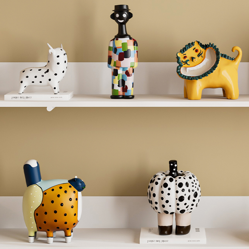 卡通动物组合北欧儿童房艺术摆件玩偶潮玩售楼处样板间软装饰品