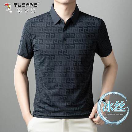 啄木鸟冰蚕丝短袖翻领冰丝T恤衫