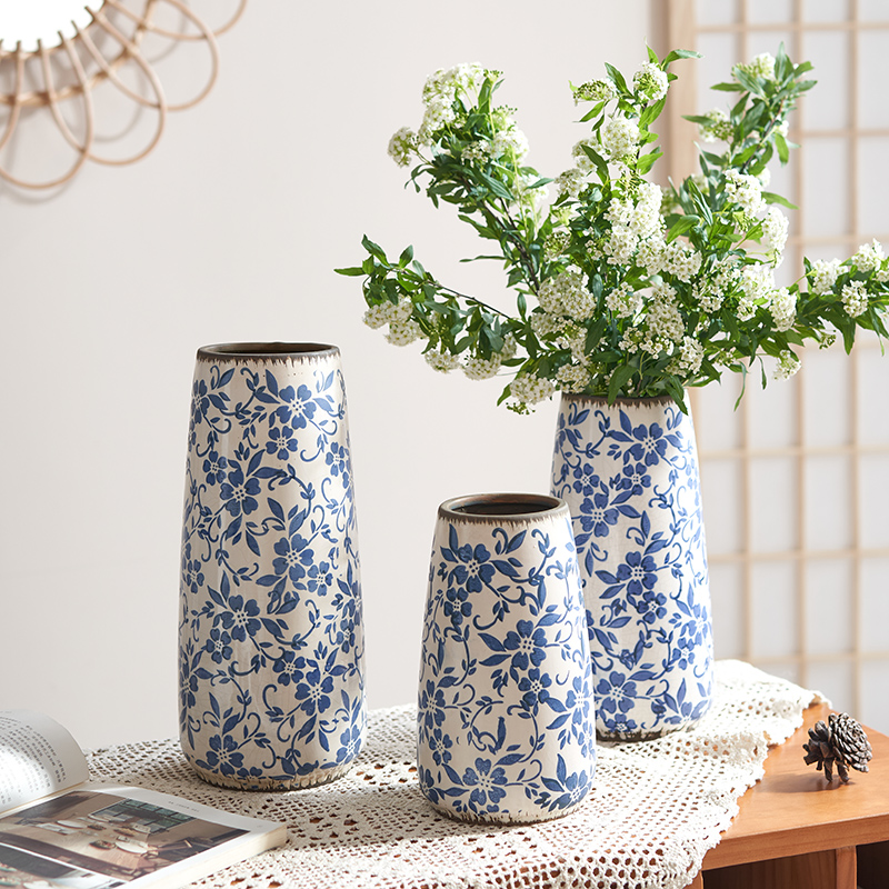 高级感轻奢新中式青花瓷复古陶瓷花瓶客厅水养插花鲜花装饰品摆件
