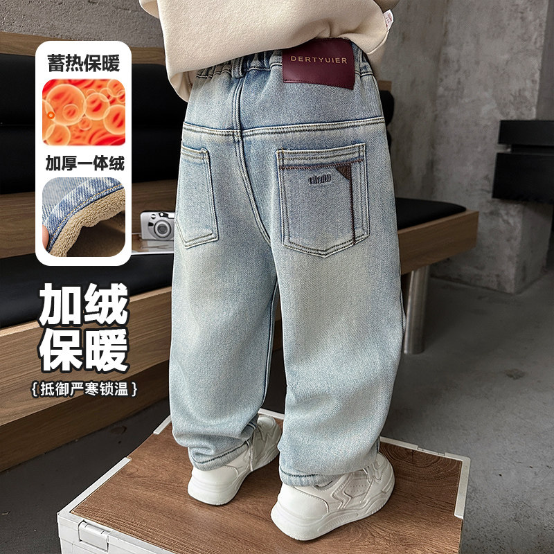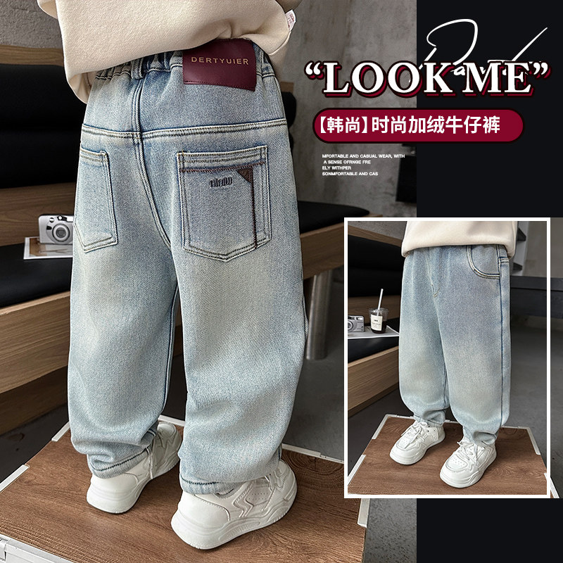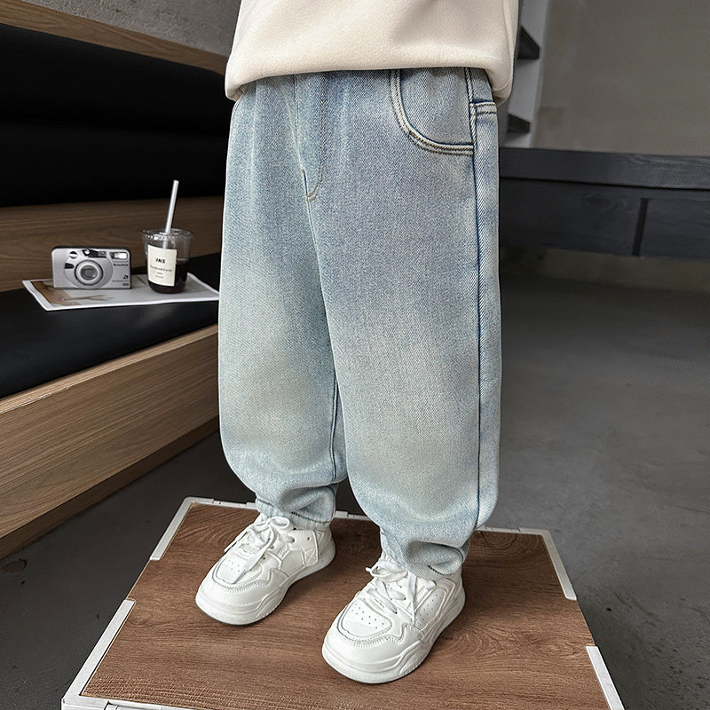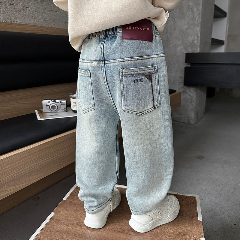 男童裤子秋冬装2025新款小男孩冬季休闲裤儿童加绒宝宝浅色牛仔裤