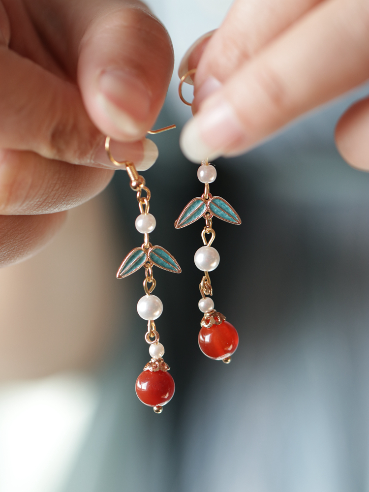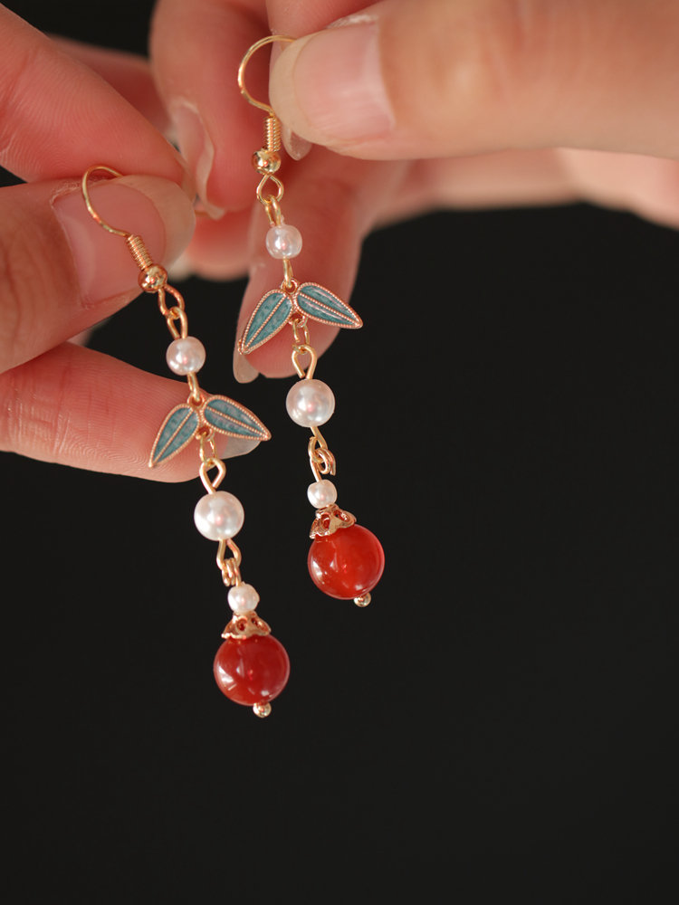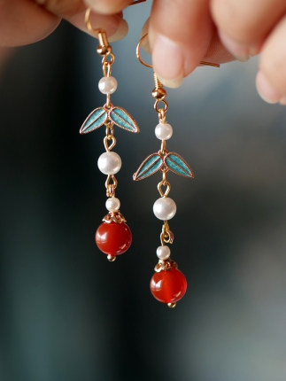 旗袍新中式耳饰 搭配红色小众独特耳坠 中式新娘汉服宋代耳环气质