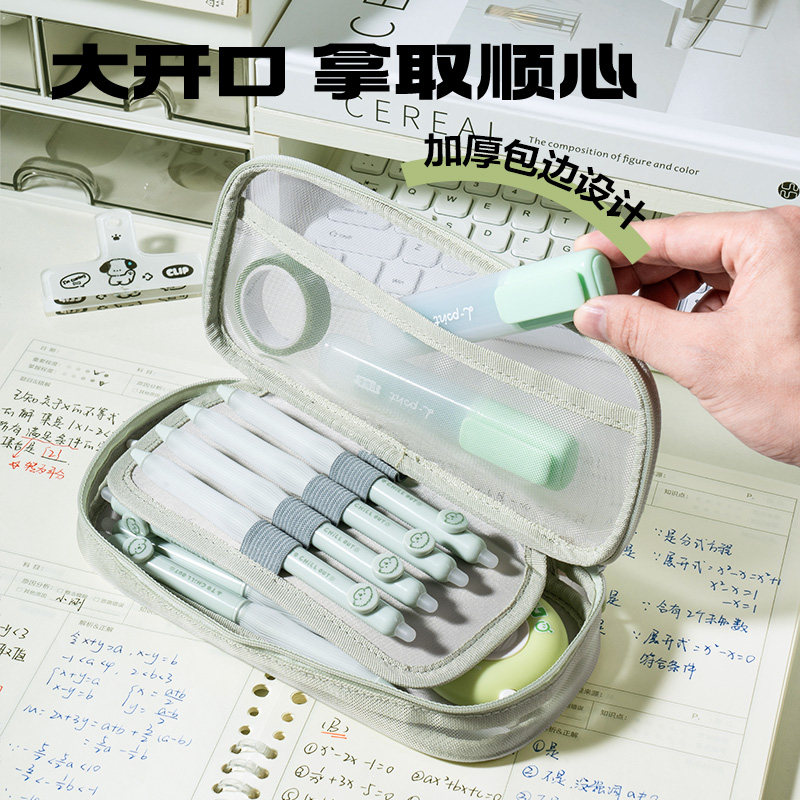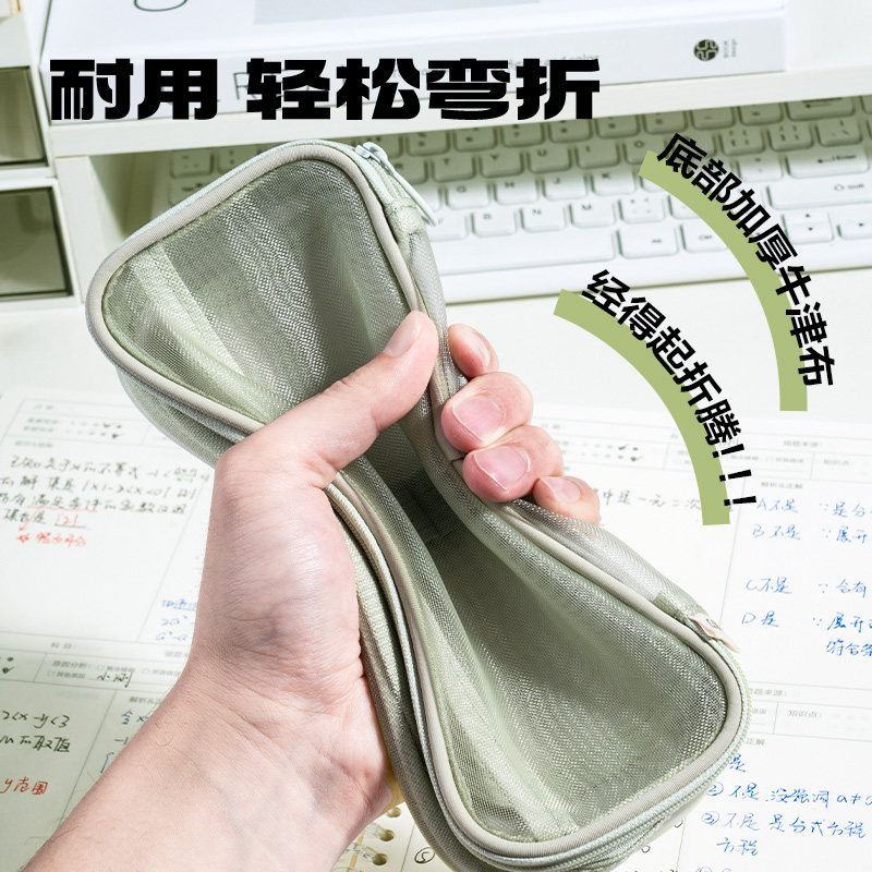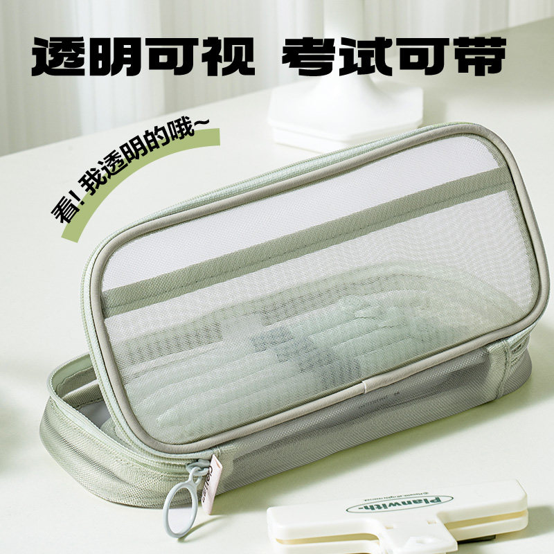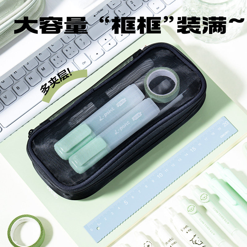得力三层网纱笔袋考试可用