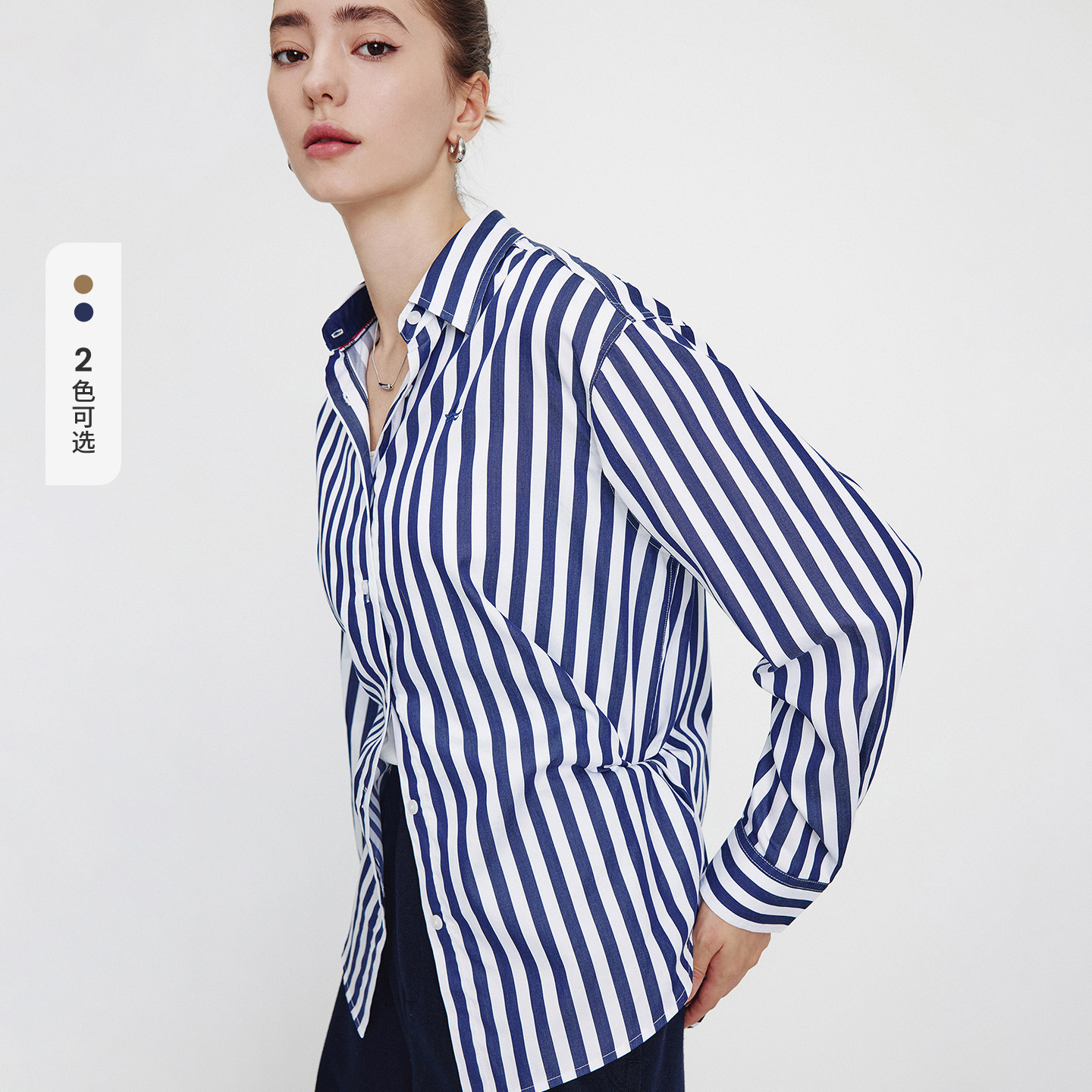 Navigare意大利小帆船蓝色条纹长袖衬衫女士2025秋季新款纯棉衬衣