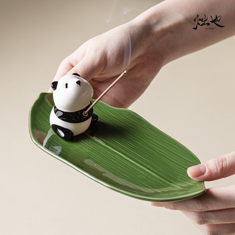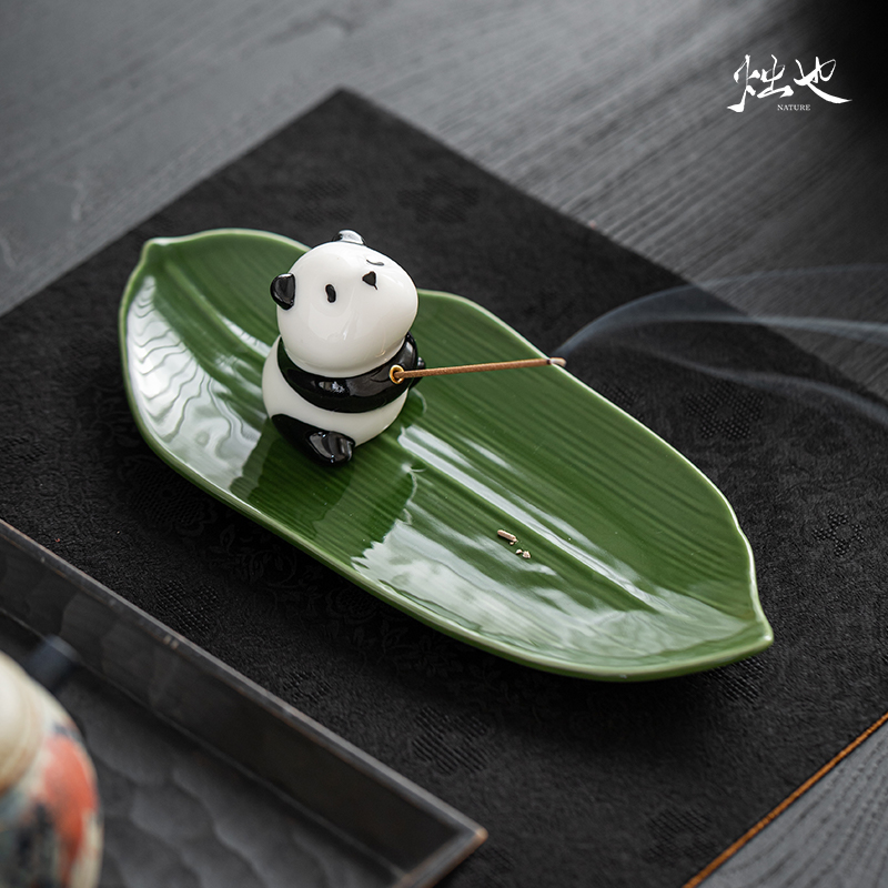白瓷可爱熊猫香插香座不落灰陶瓷室内家用线香小香器茶道配件中式