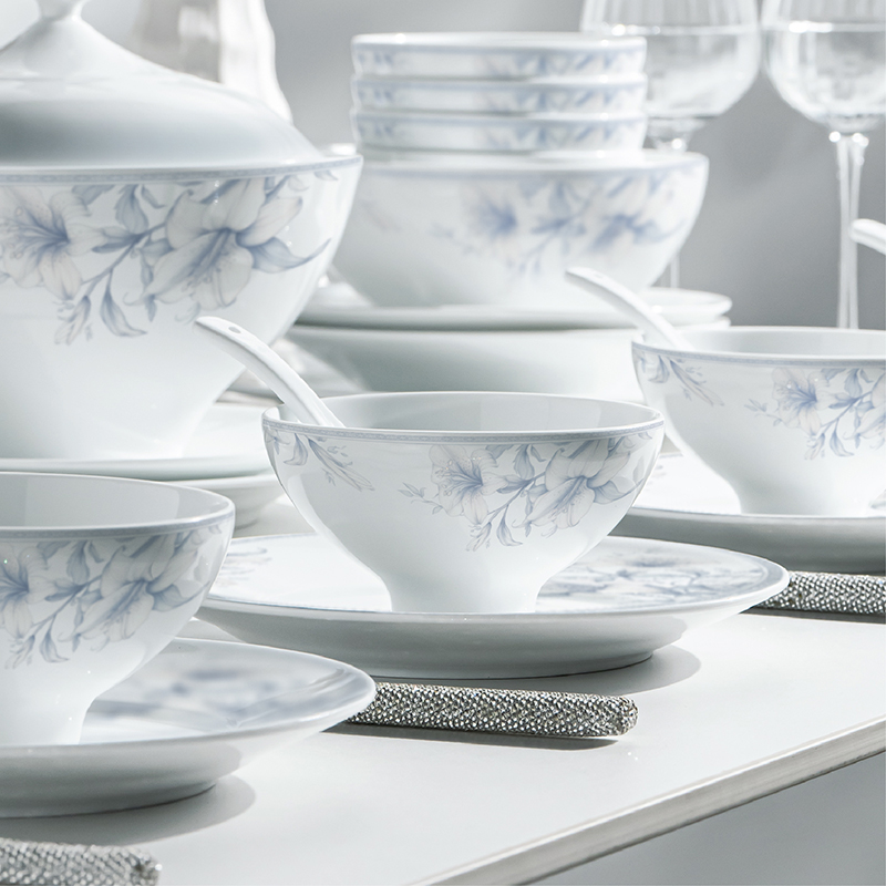 镇青色景德镇家用碗碟陶瓷餐具套装高白瓷釉下彩2025新款乔迁礼物