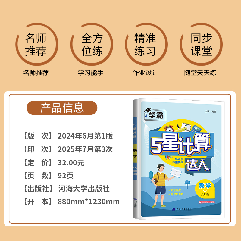 2026学霸初中计算达人七年级上册八九年级下册人教版浙教版江苏教北师大版初一二5星计算题数学专项训练同步练习册天天练运算能手