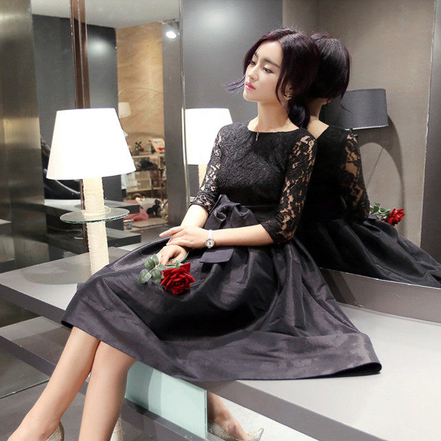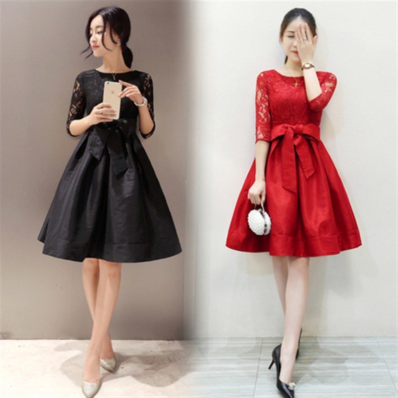 蕾丝小个子连衣裙2021年夏新款女装优雅显瘦中长款礼服a字蓬蓬裙
