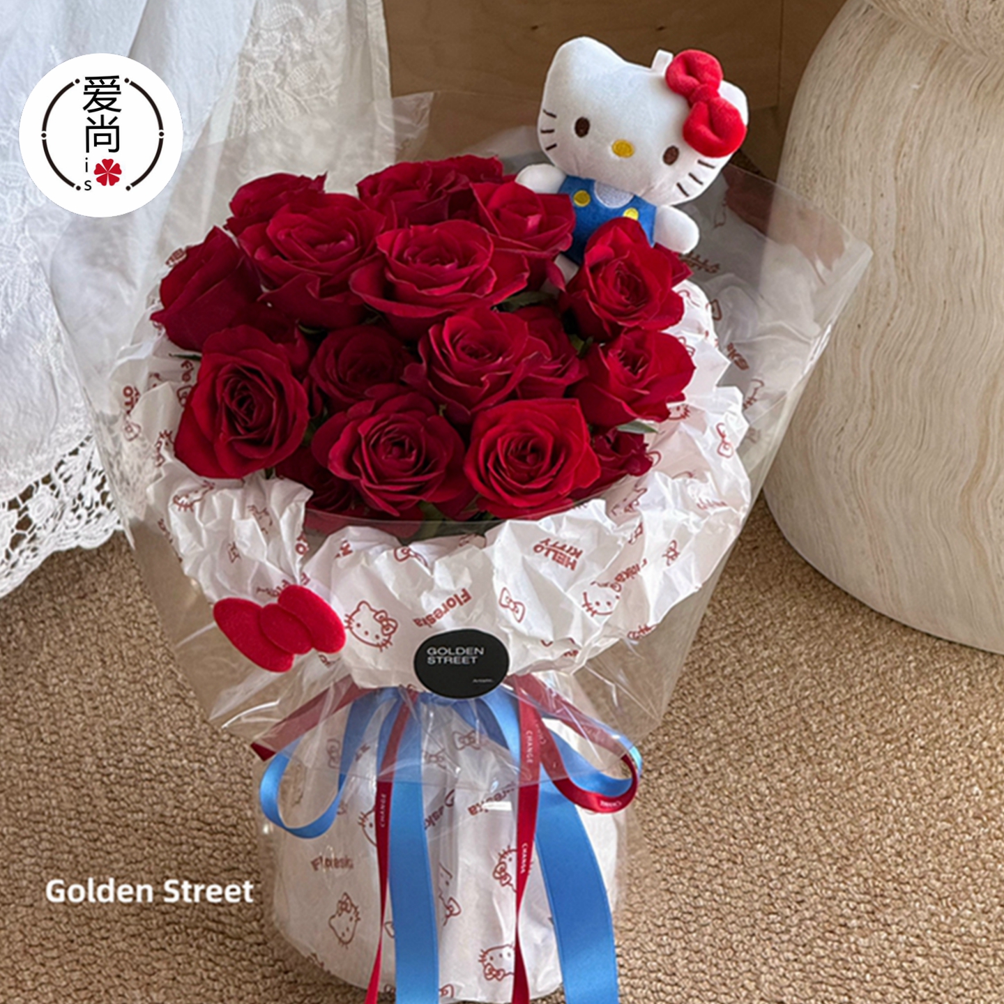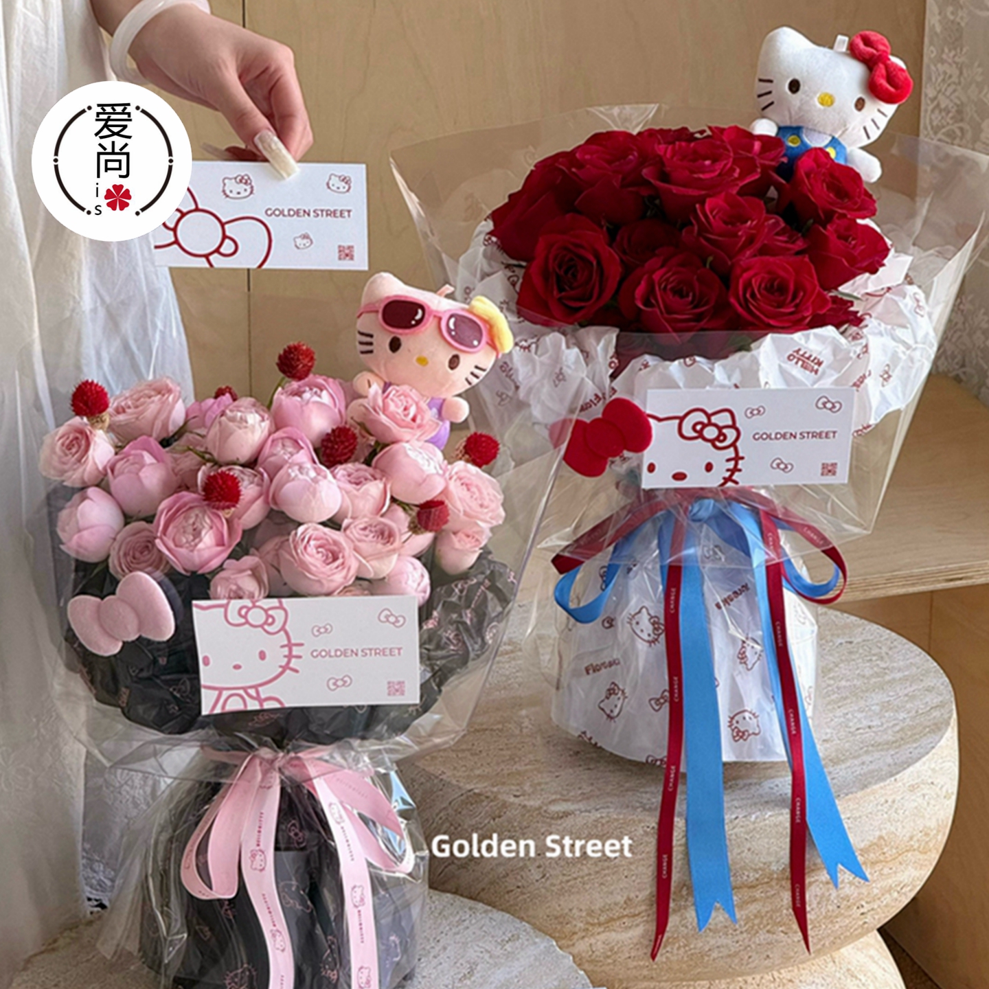 38克加厚kitty猫雪梨纸凯特喵内衬手揉纸鲜花礼物花束褶皱包装纸