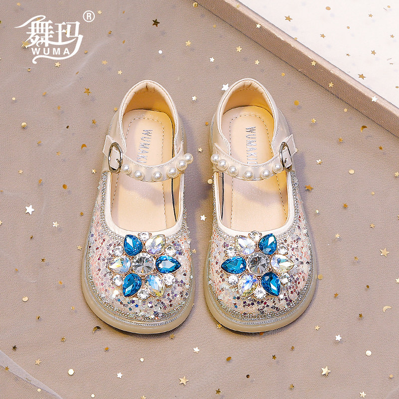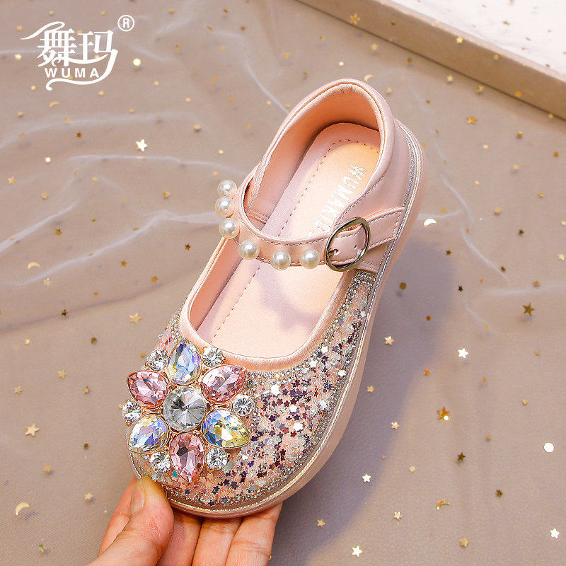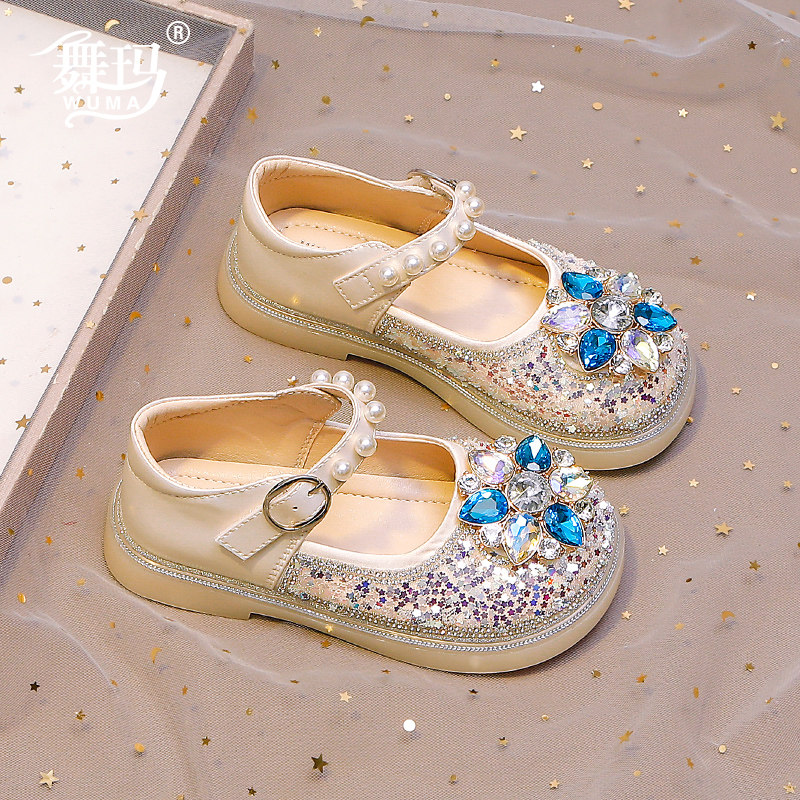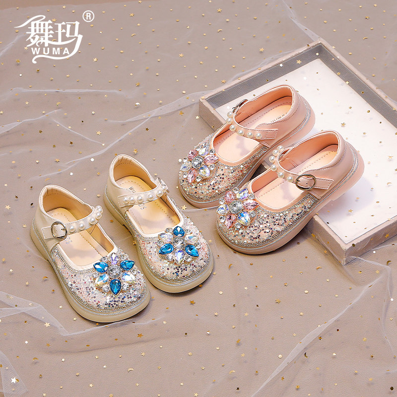 女童鞋子儿童公主鞋2026新款春秋款小女孩秋季皮鞋水钻软底水晶鞋