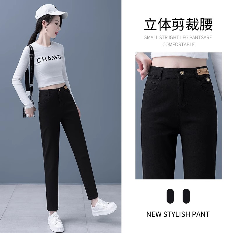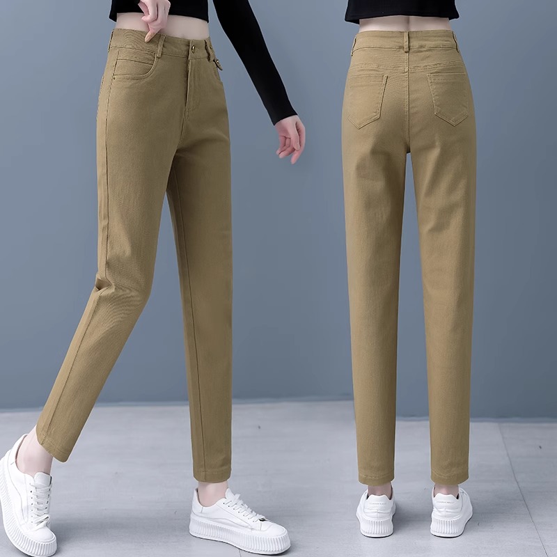 休闲裤女春秋哈伦裤2025年松紧高腰显瘦直筒裤子薄款含棉女裤常规