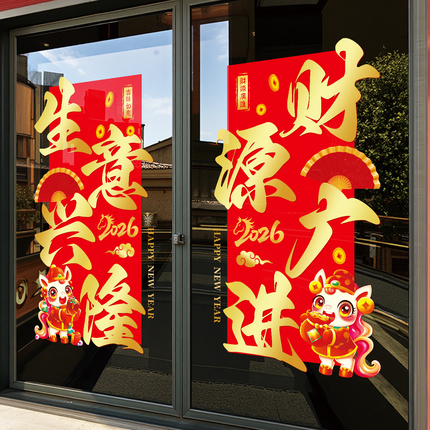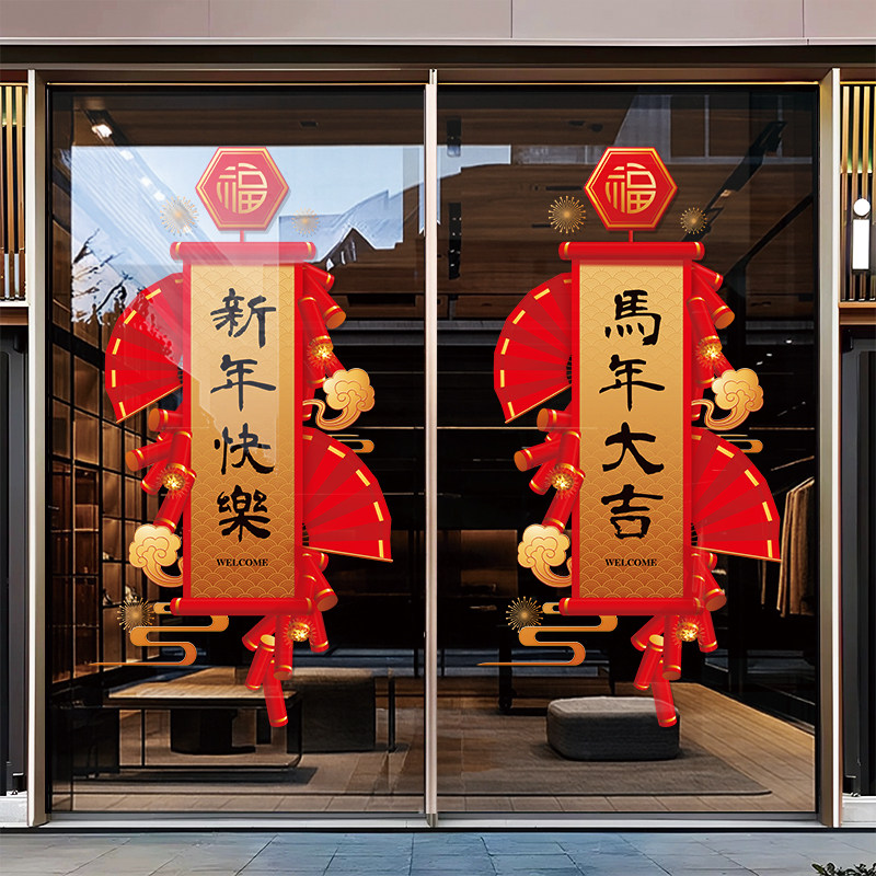 2025马年新年装饰品玻璃门贴纸店铺商场节庆场景布置中式窗花贴画
