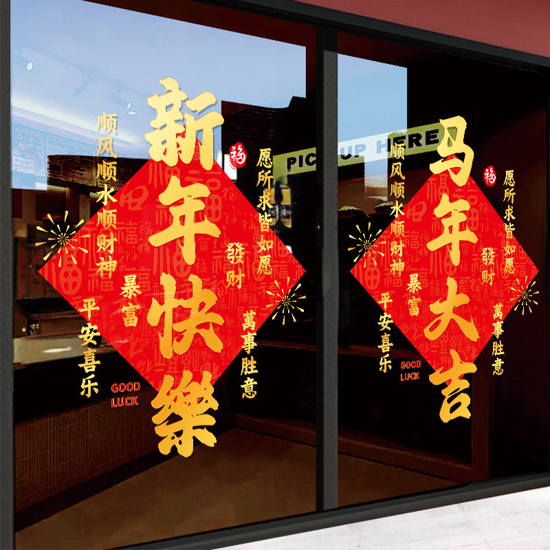 2024马年新年装饰品玻璃门贴纸