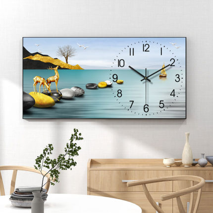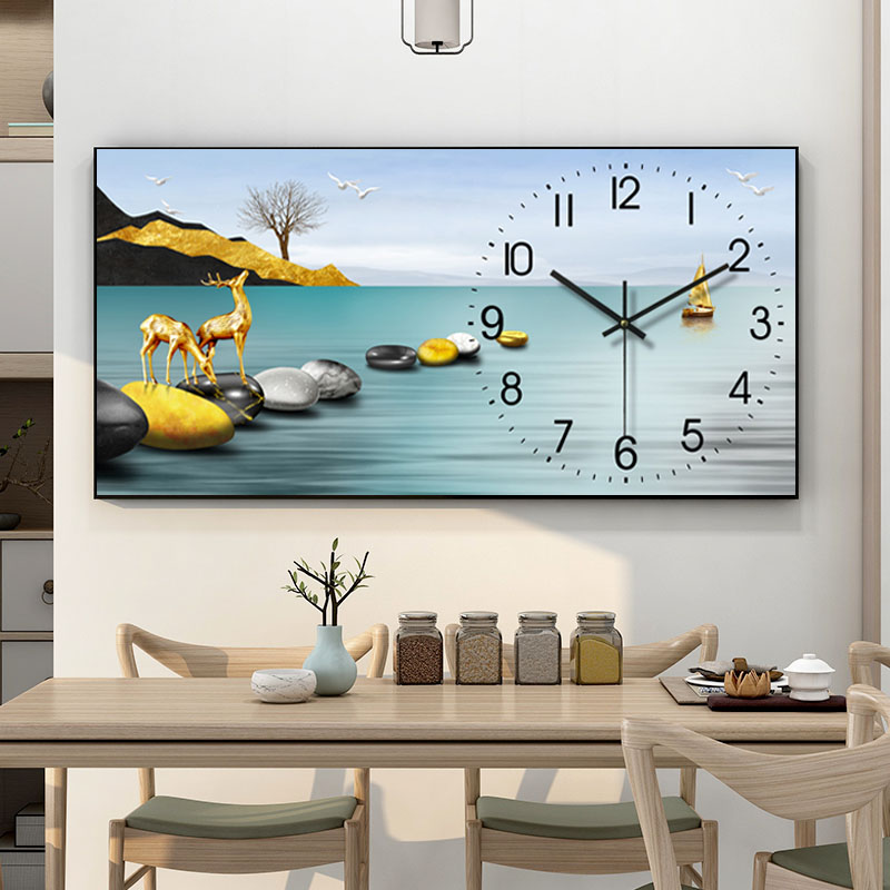 石来运转钻石画满钻新款餐厅现代简约风景十字绣带钟表贴钻水晶5d