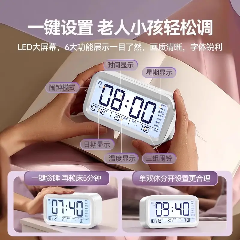 智能闹钟学生专用起床神器2025新款强力叫醒电子时钟初高中多功能