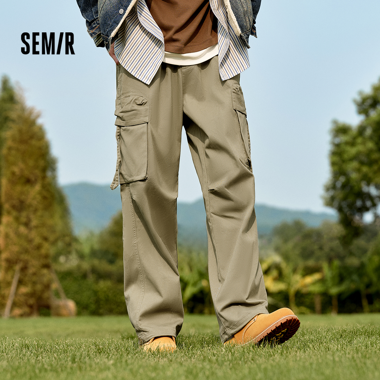 森马休闲裤冬季潮流工装风抽绳宽松直筒长裤松紧腰裤子男女同款