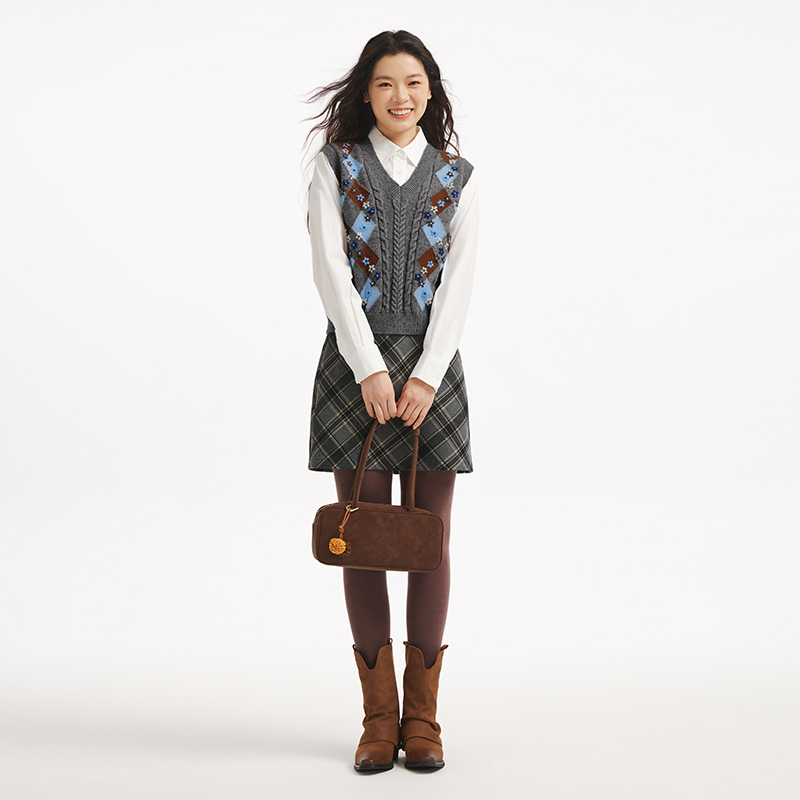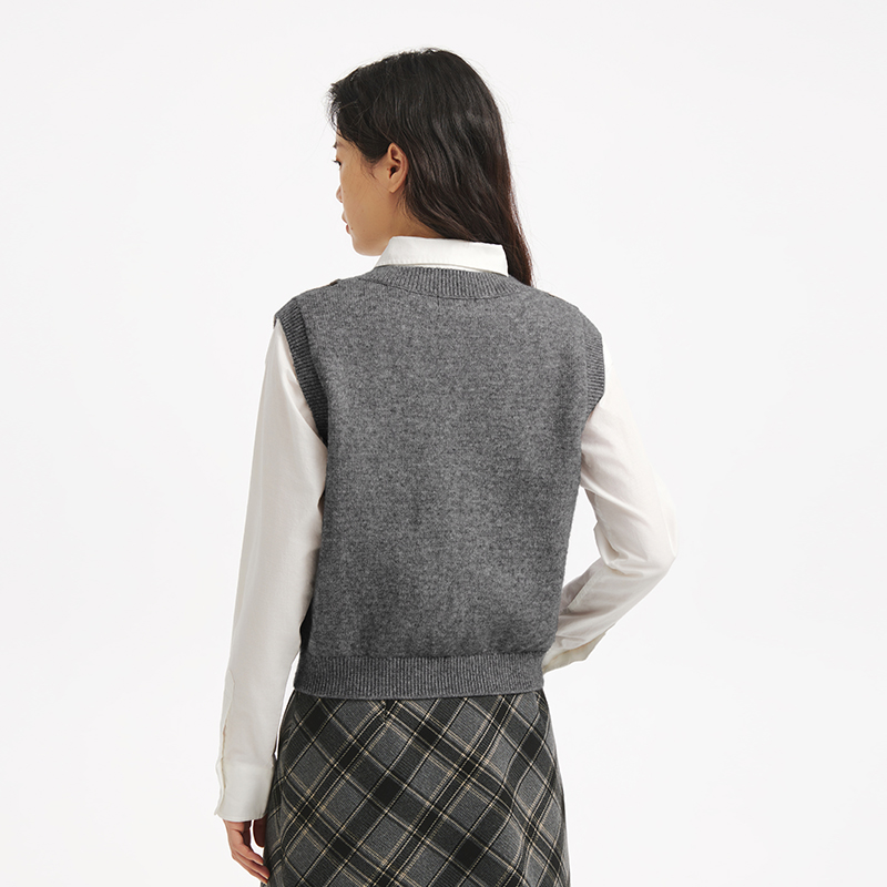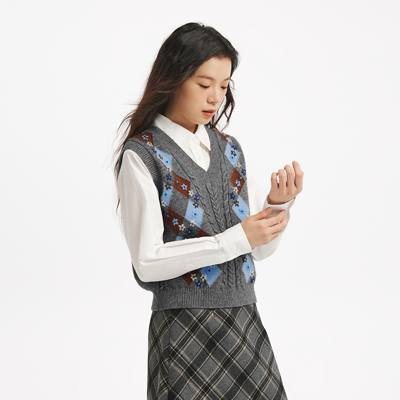 热风女士针织衫马甲背心2025年秋季新款老钱风花卉V领内搭打底衫