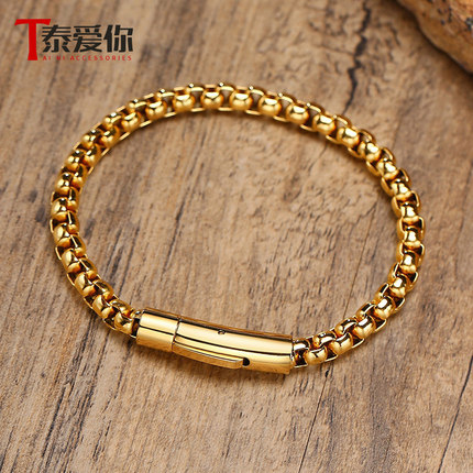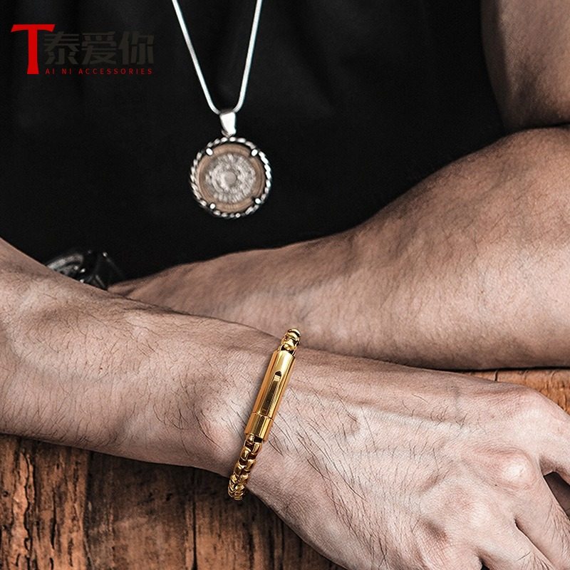 泰爱你时尚朋克风仿珍珠链手链潮男气质个性钛钢手饰品配饰礼物