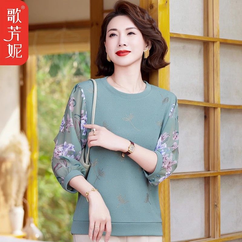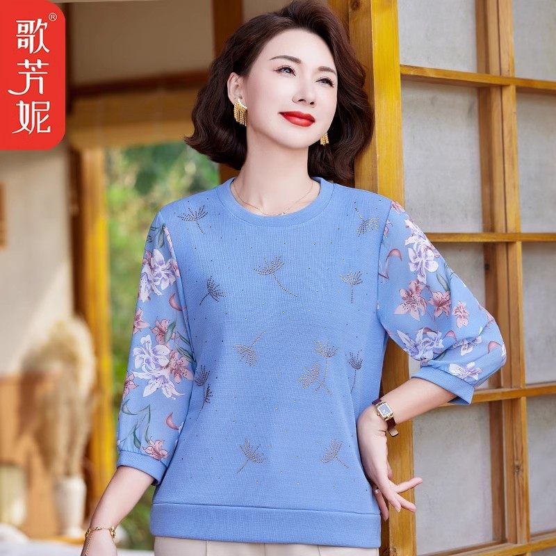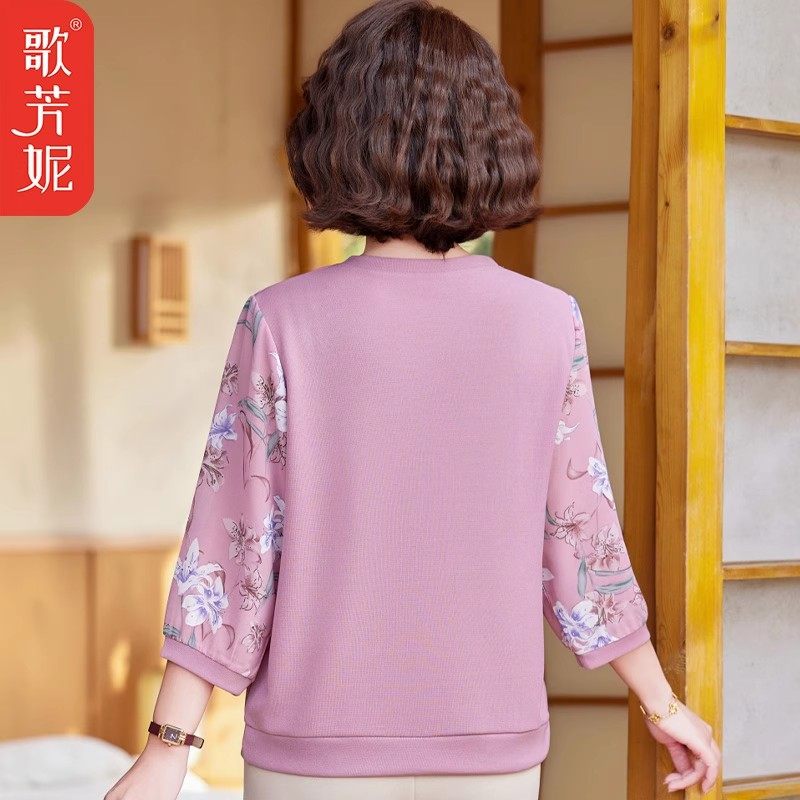 中老年妈妈装雪纺中袖减龄洋气短袖中年女装宽松夏装大码T打底衫