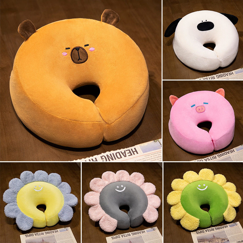 卡通水豚记忆棉太阳花旅行颈椎枕头枕脖枕护颈枕办公室午睡