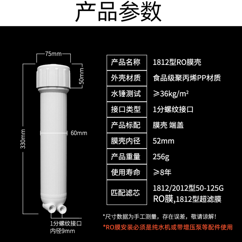 汇通反渗透RO膜丰达膜壳1812-75/100G超滤过滤壳纯水机净水器配件