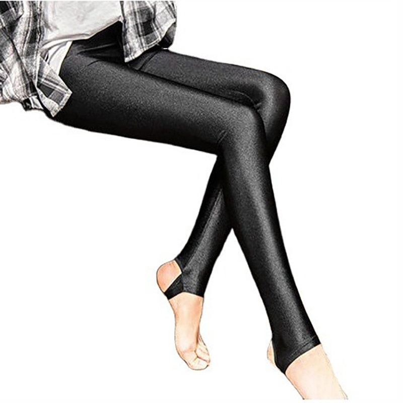 2条装 春夏季薄款光泽裤女高腰外穿大码打底裤弹力踩脚九分小脚裤