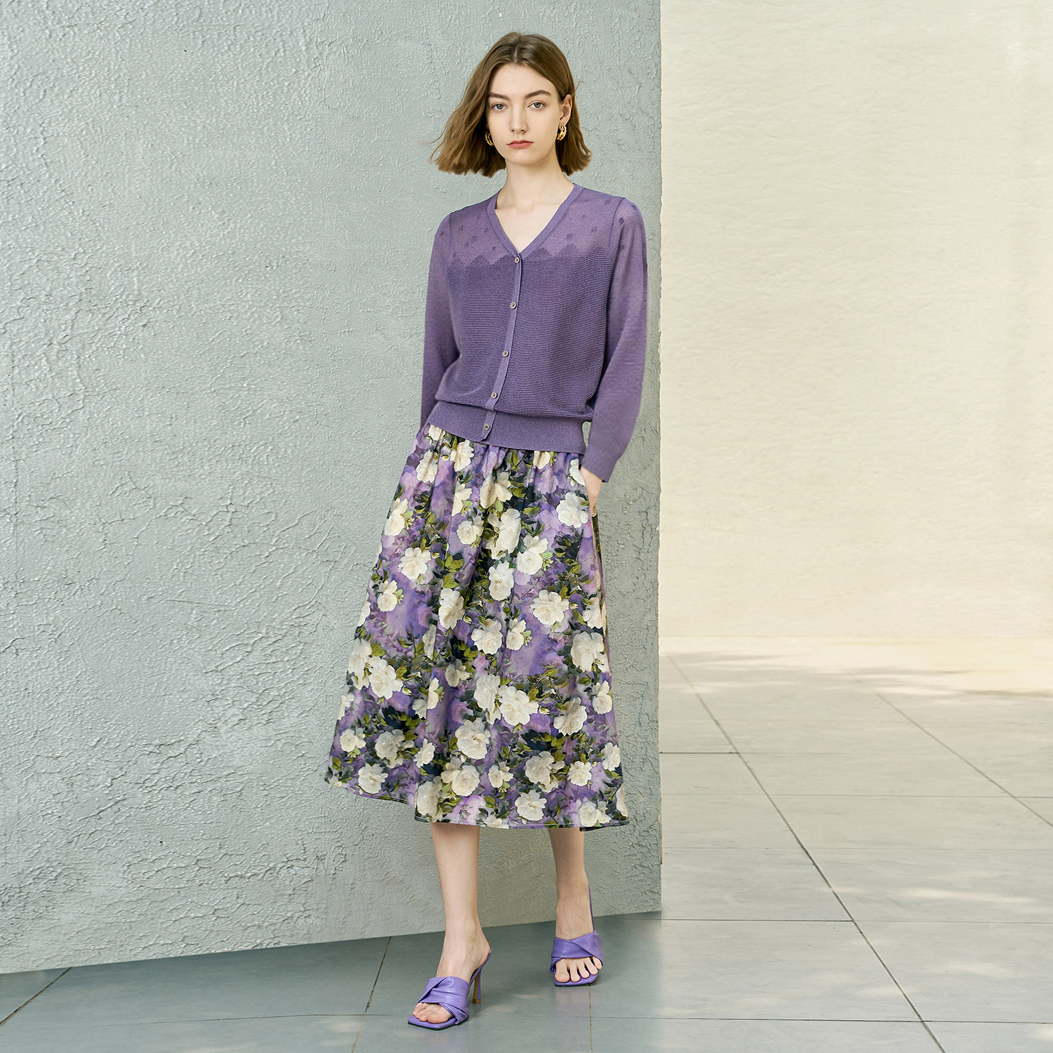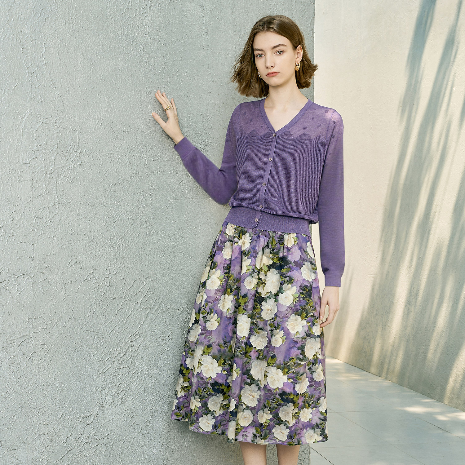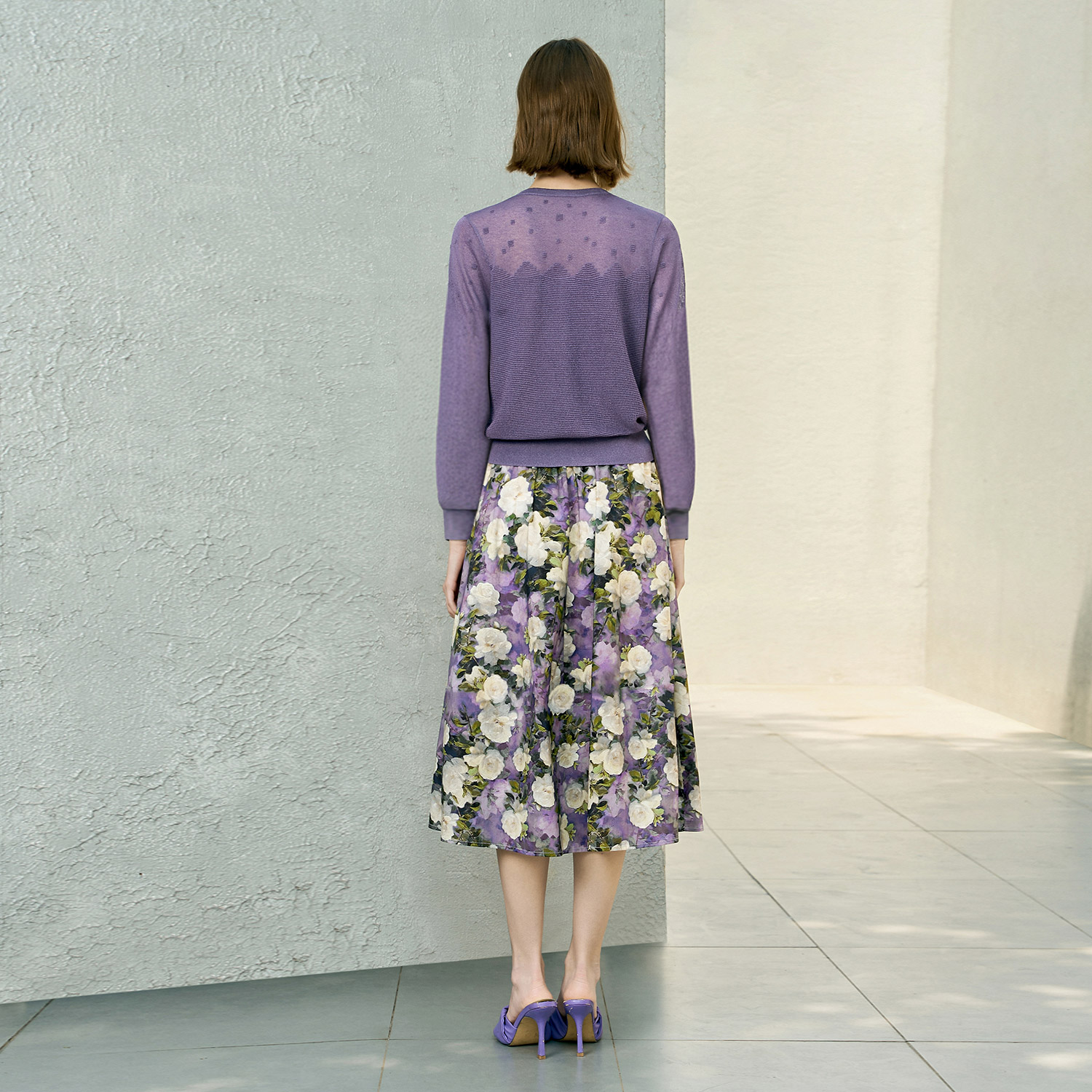 颜域蕾丝针织衫印花半身裙两件套装女士2025秋季新款搭配一整套女